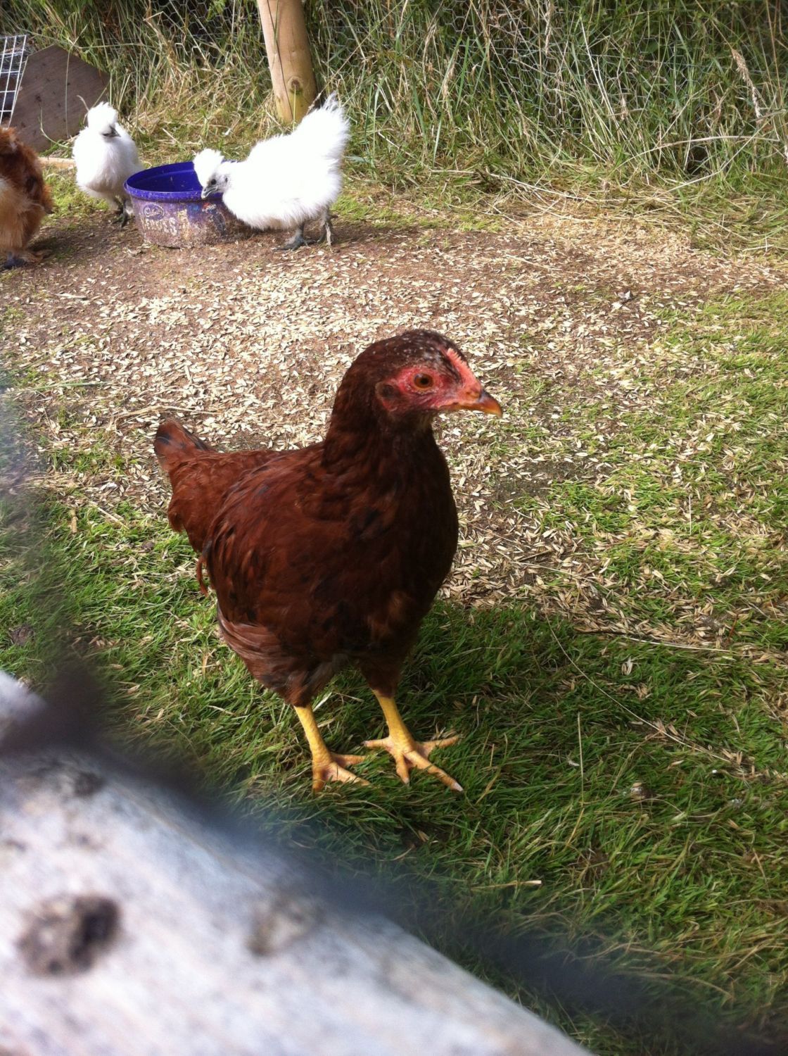 two roosters were running round with my hybrid rhode islands a pure bred rhode island rooster and a silkie rooster, i dont know which one is the father of this pullet can anyone help?![]()