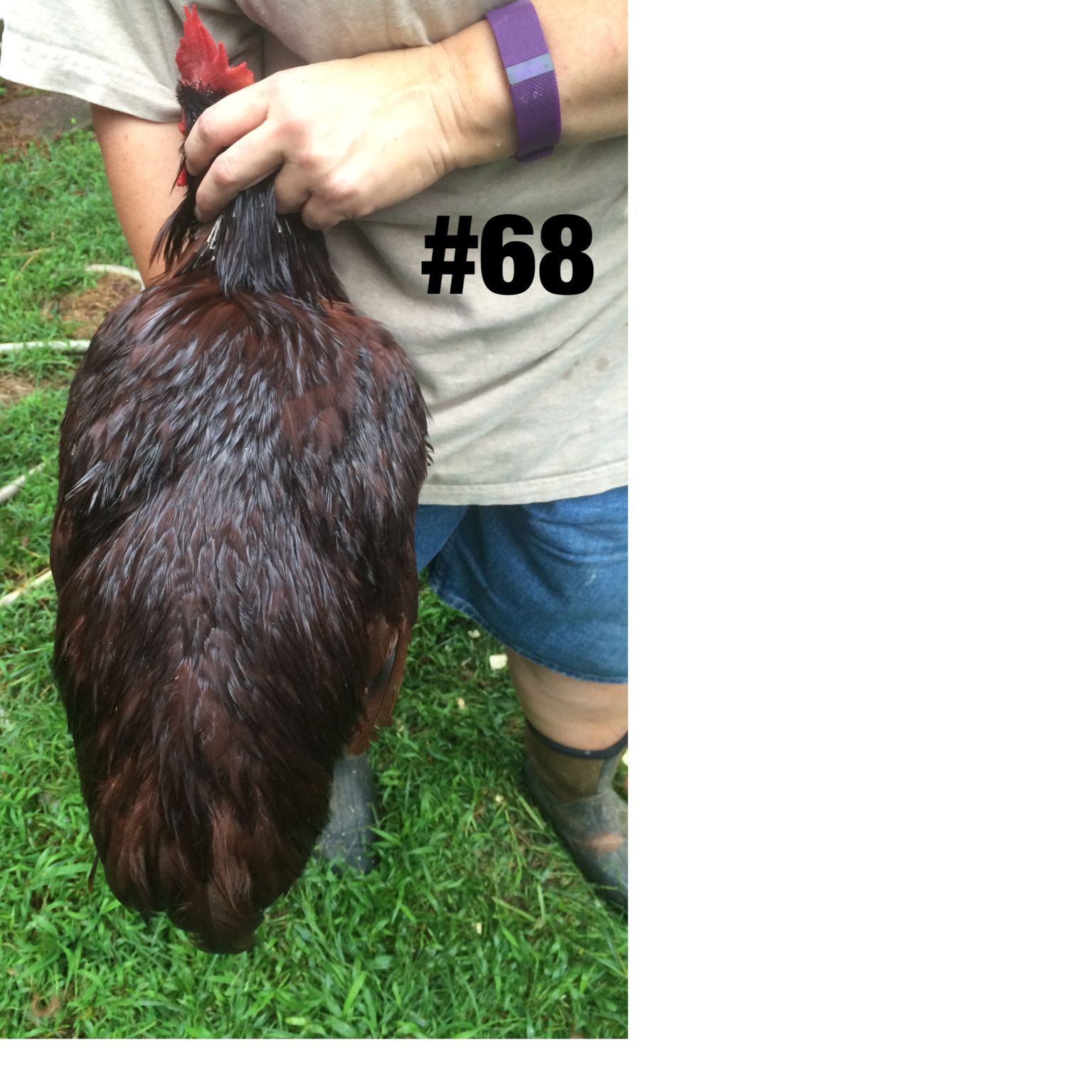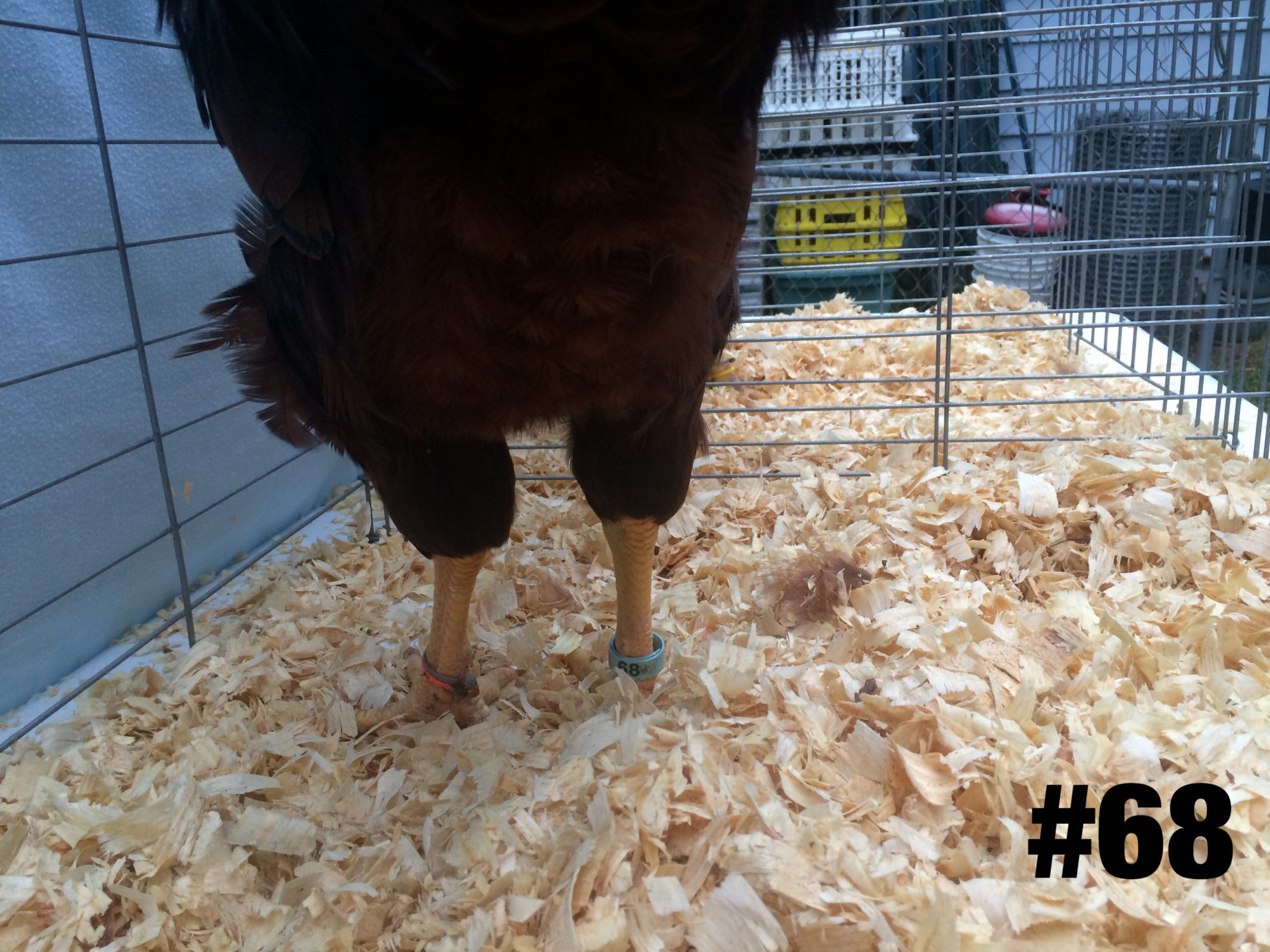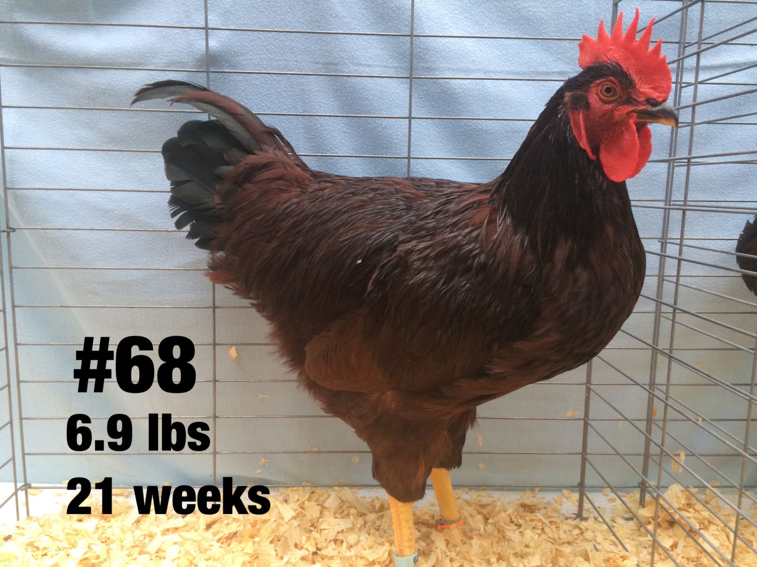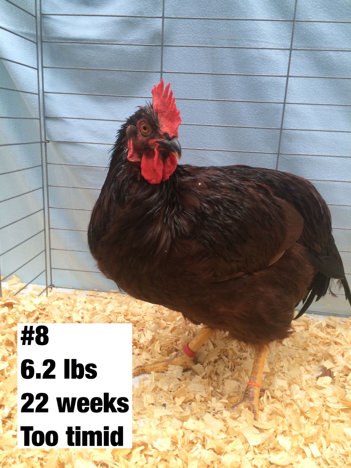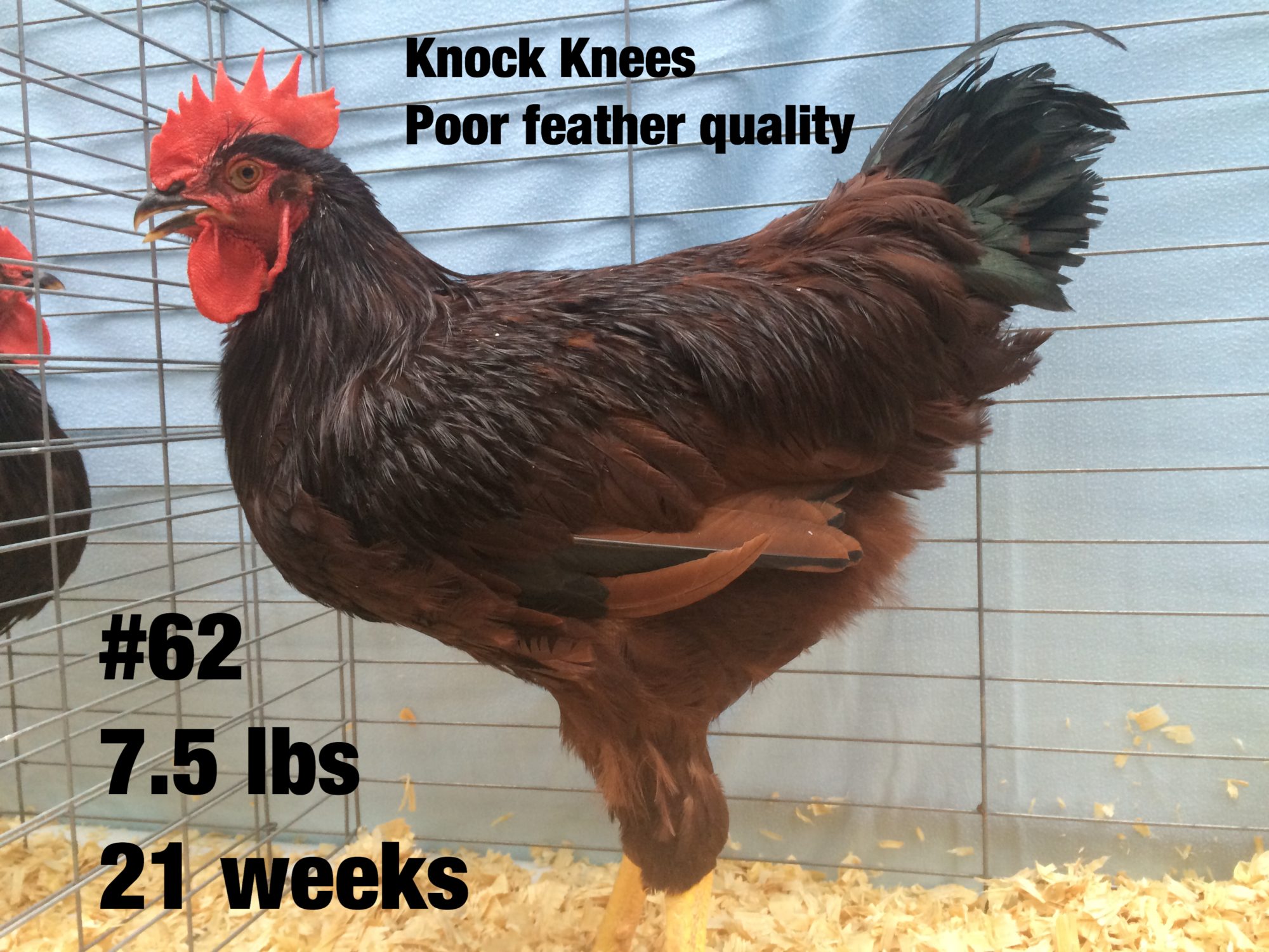 Well, took me a week post culling the cockerals last Wednesday to get the pictures sorted and posted on here. I had 15 of one line and 12 of the other line to choose from. Only really found 2 that stood out as outstanding. (compared to the others) I'm keeping 4 though, including one sorry specimen who is on the bottom of the cockerel pecking order. His extreme pitifulness was not as obvious when there were 27 males running in the yard. Now that there is only 4 it is obvious. Still I wanted 2 from each group and he had good Hogan (Pelvic) measurements, and nicely shaped pelvic bones. The weights posted on the pictures are first thing in the morning so no feed that day. I find weighing at night vs morning tends to average about 4 oz different at this age. Not sure how many pictures it will let me post