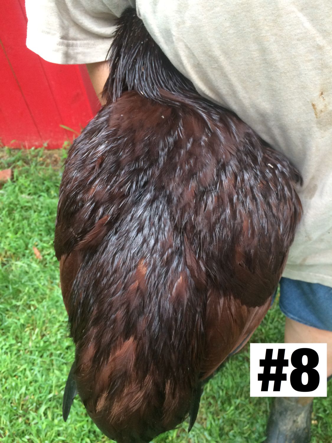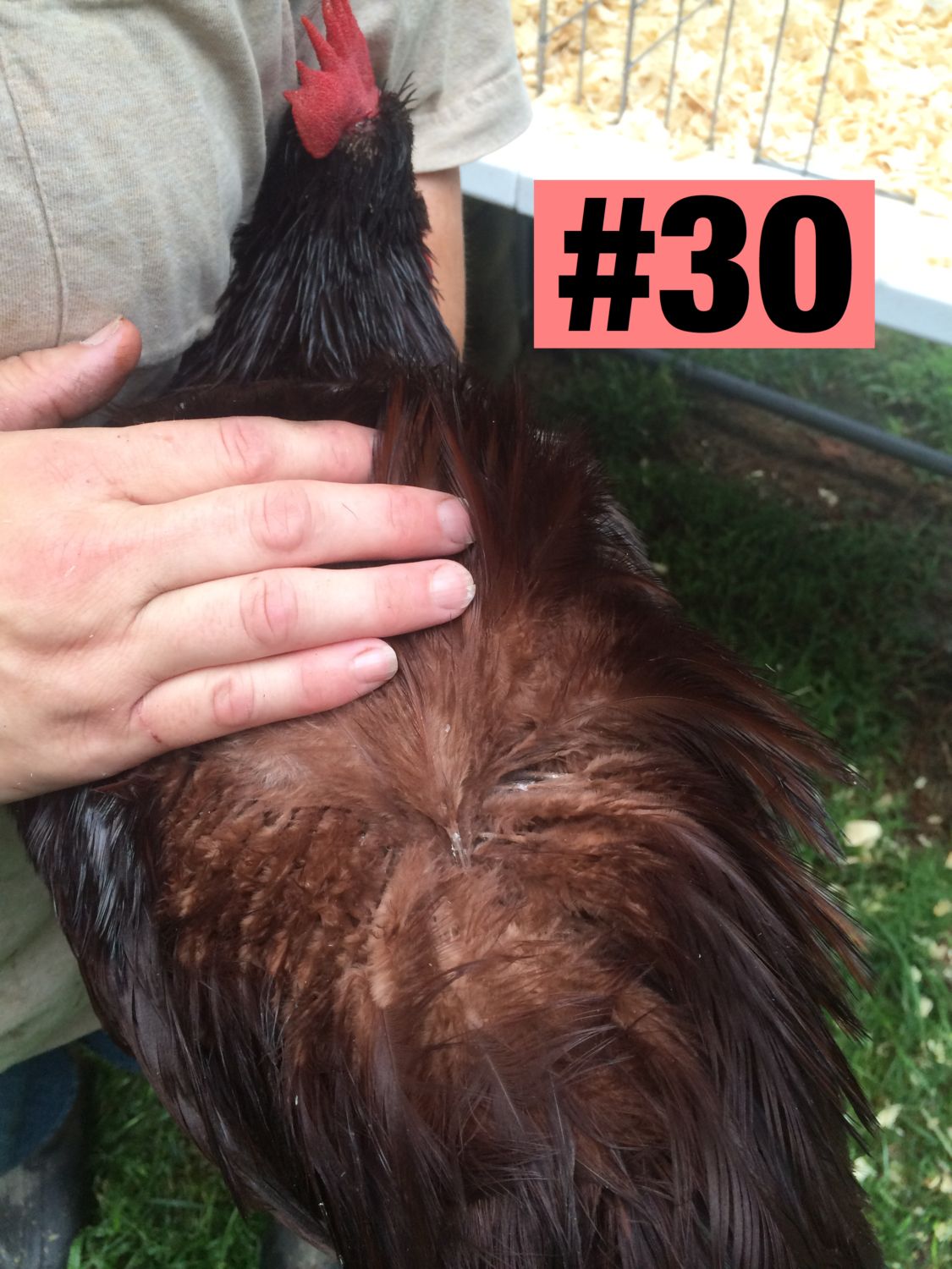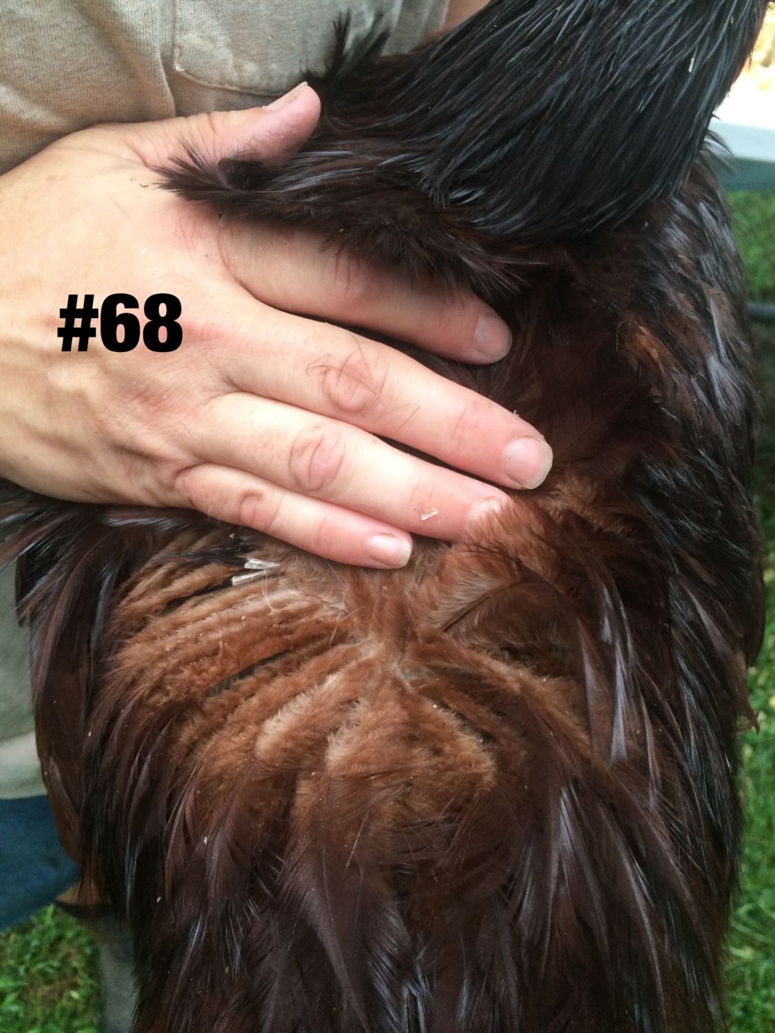 Now, at point of lay, I've handled all of this year's pullets a couple of times. I've chosen my best two pullets of 2015. They are far from perfect. They need better tails, especially need to eliminate the red in those tail feathers. It's an uphill climb and very rarely do you see a female without at least some misplaced red in the tail.