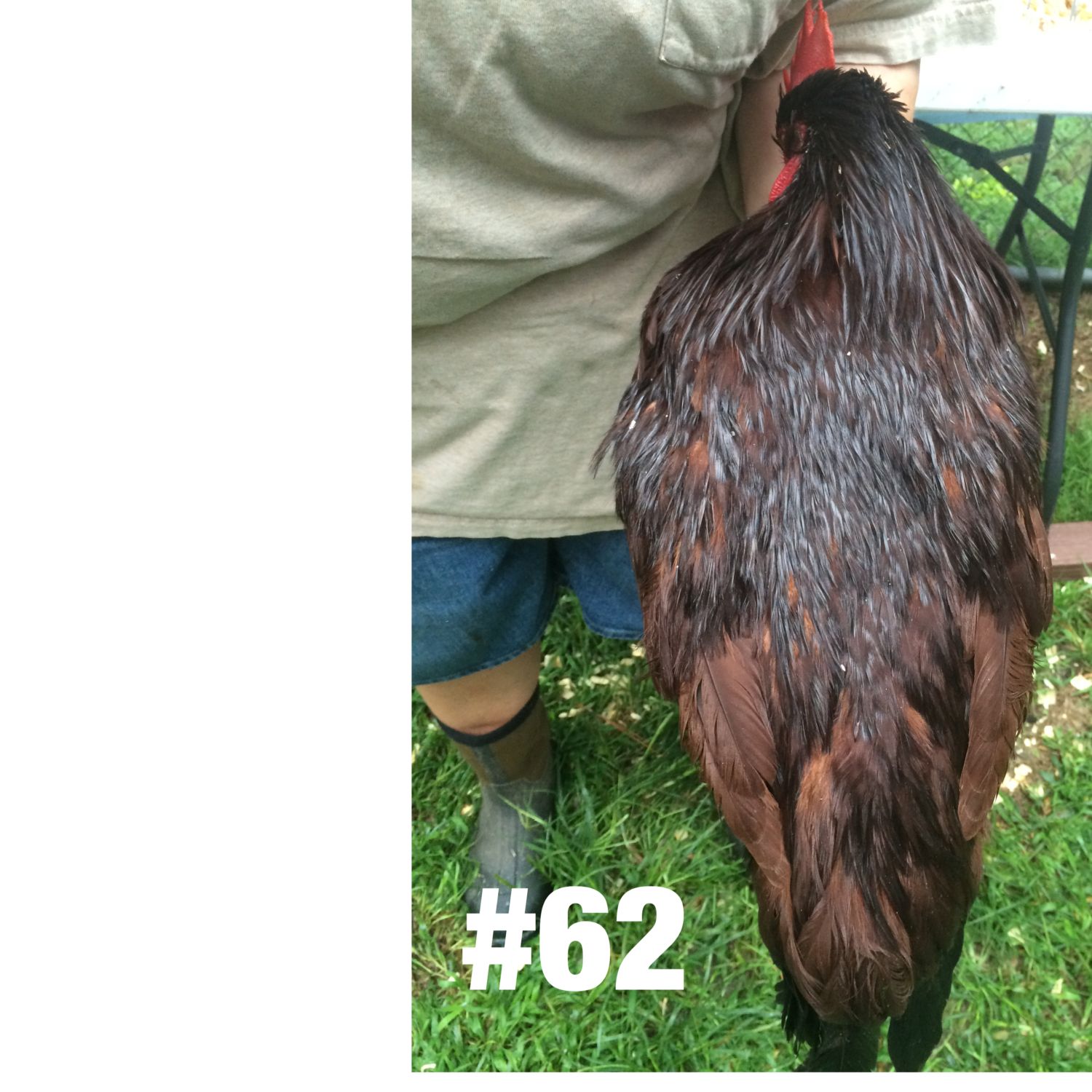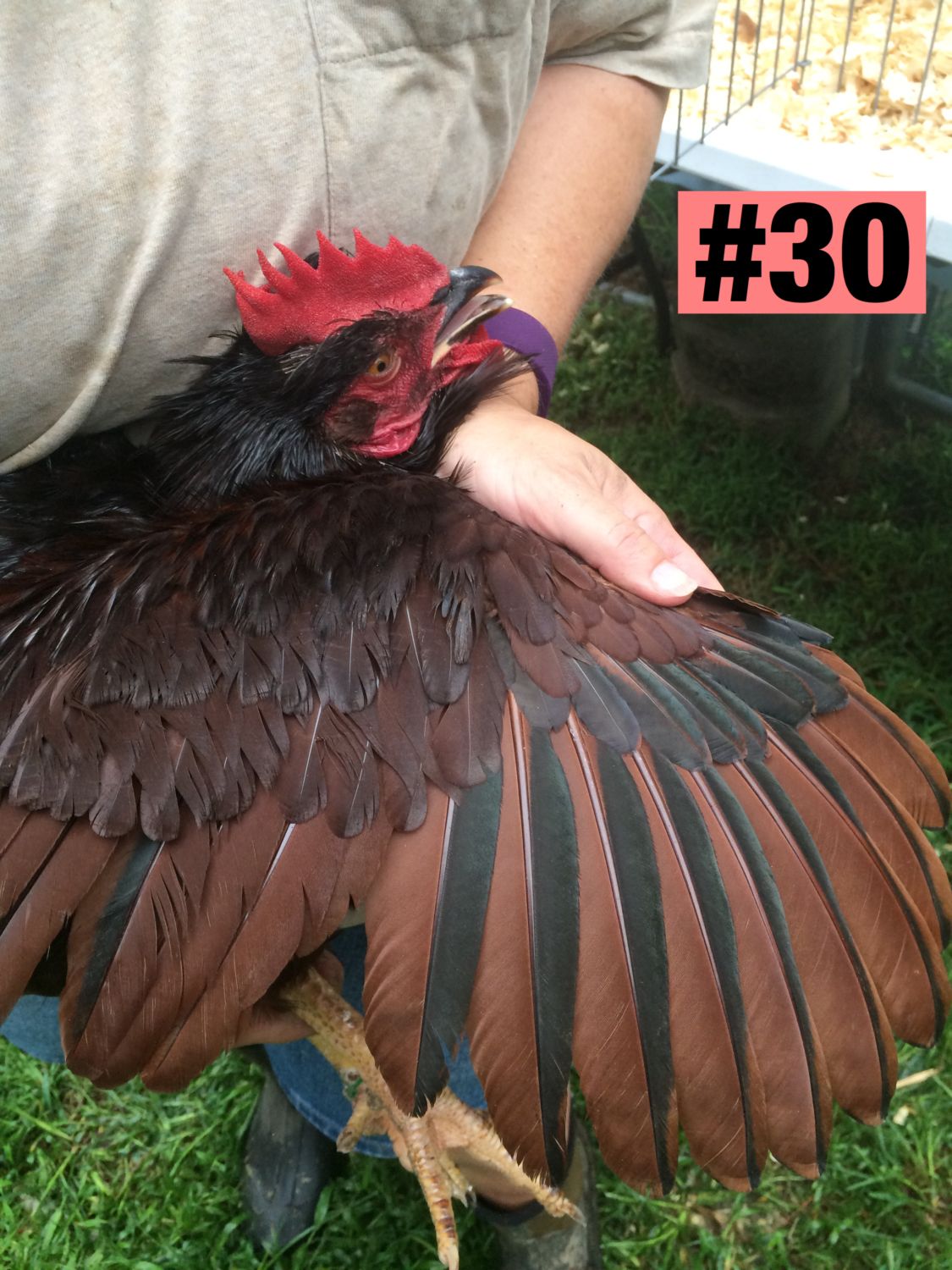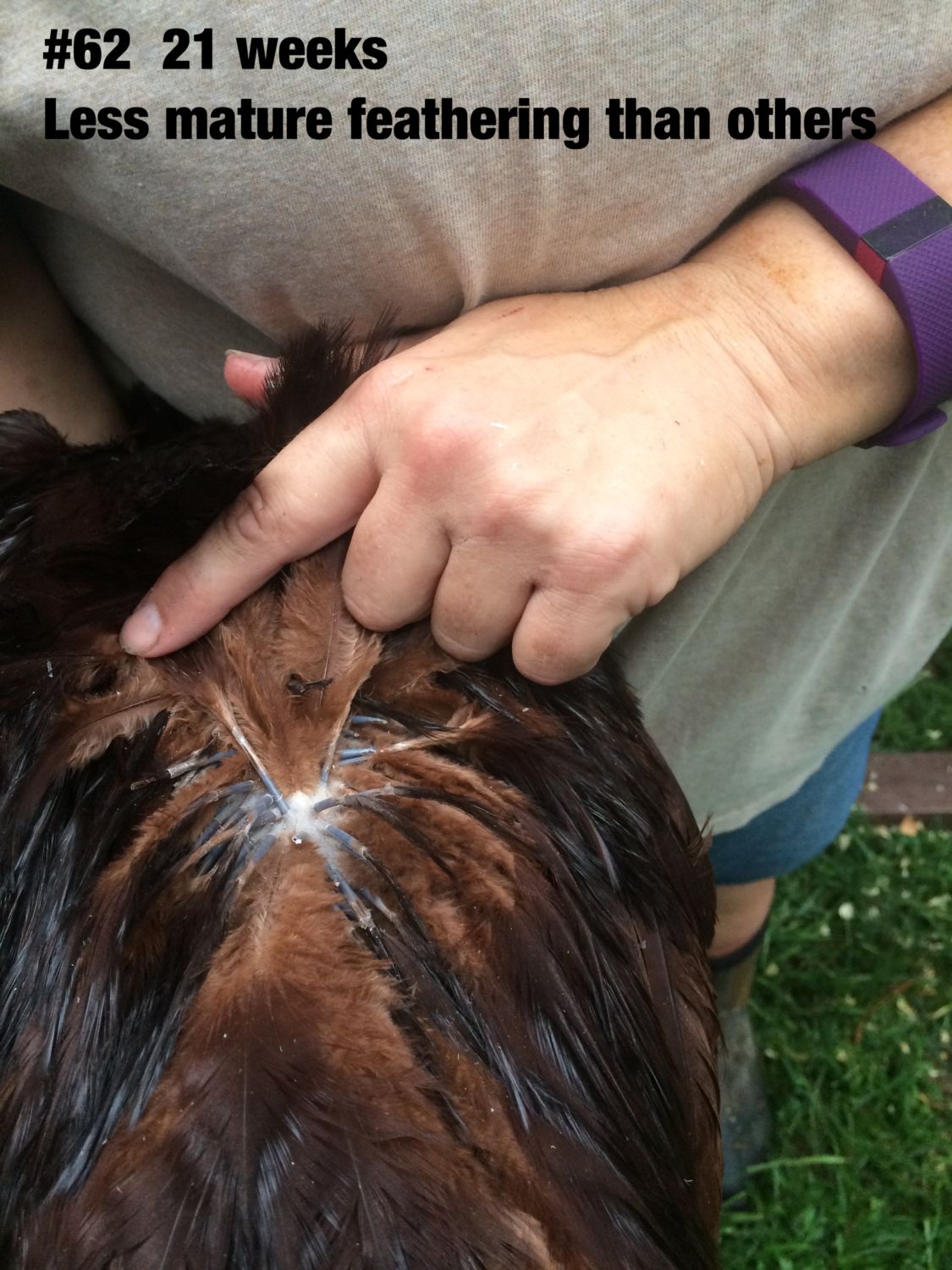 Now, at point of lay, I've handled all of this year's pullets a couple of times. I've chosen my best two pullets of 2015. They are far from perfect. They need better tails, especially need to eliminate the red in those tail feathers. It's an uphill climb and very rarely do you see a female without at least some misplaced red in the tail.