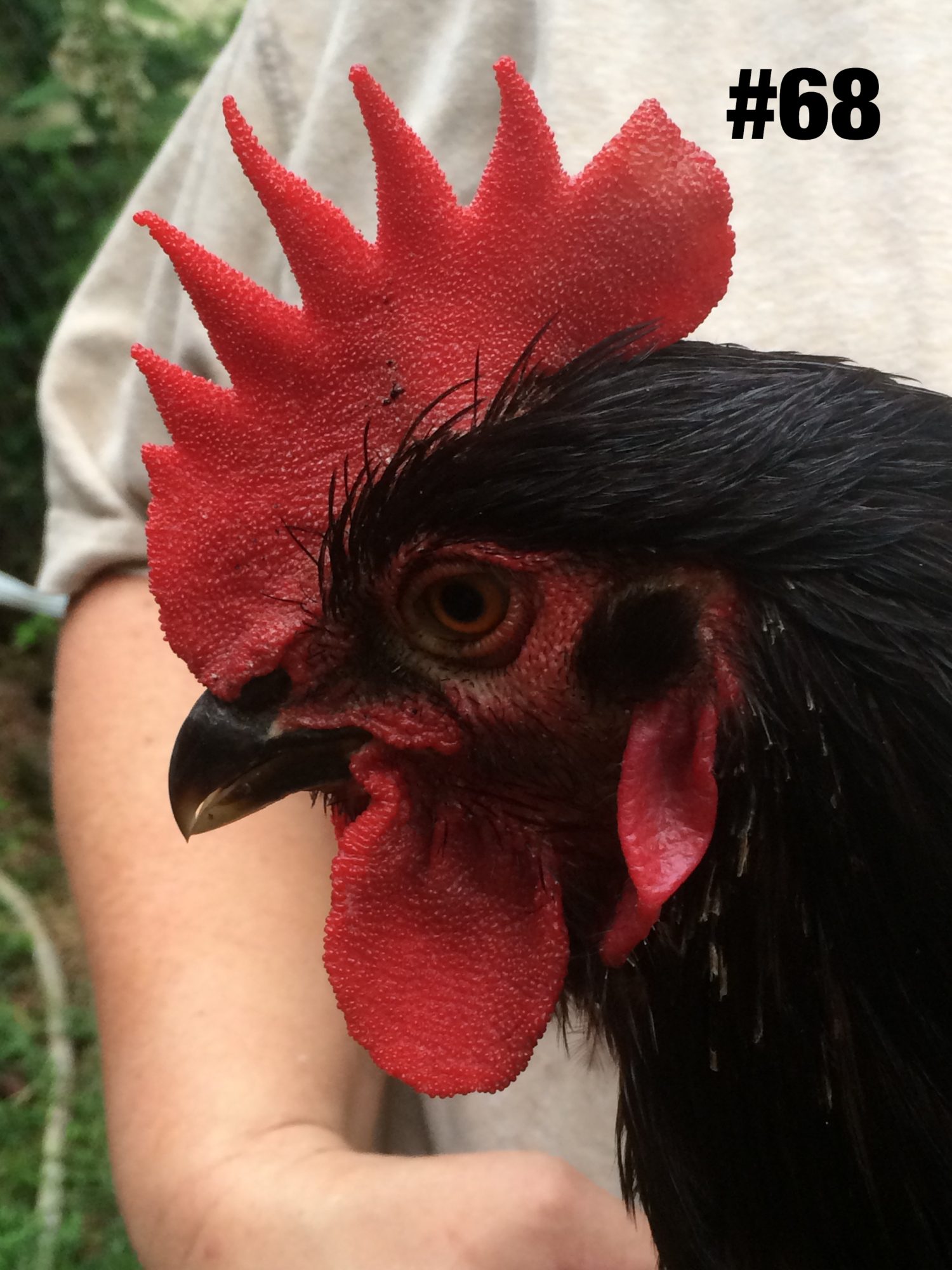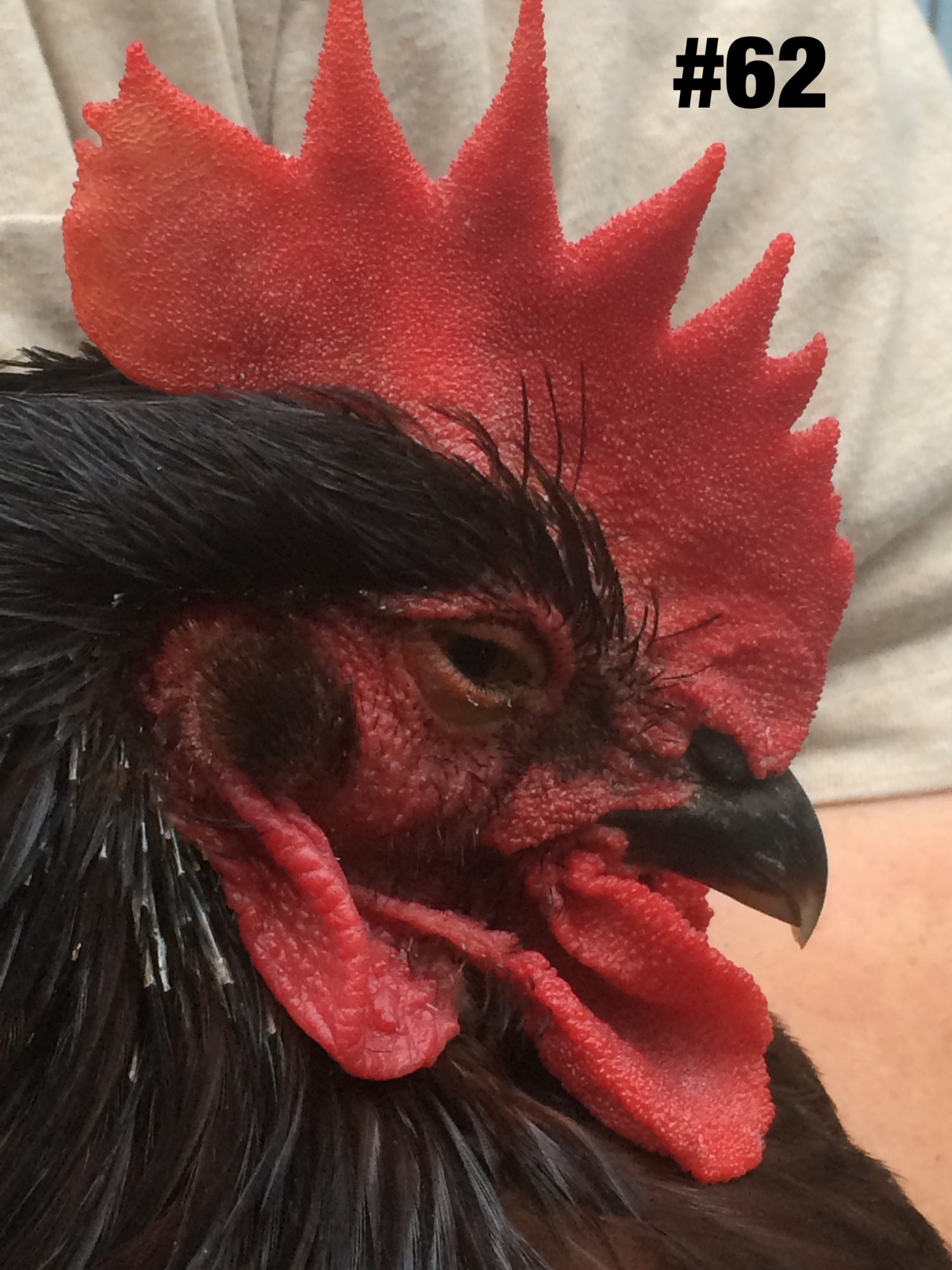 On the males, the issue that remains a struggle is eliminating the misplaced black in the hackles. Have sorted through the K's now that they have finished putting in the adult feathers. Found two males with almost no misplaced black in the hackles.