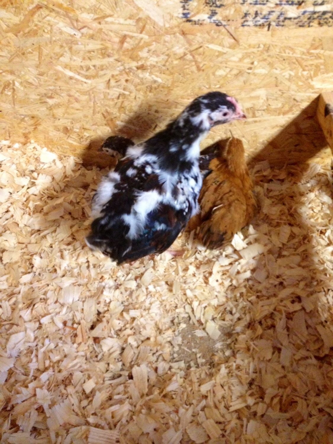 [/COLOR] These are his two sisters from the same hatch. The one on the left is also the result of jubilee x splash (she recently started showing red in her chest), the one on the right is the result of jubilee x gold laced blue (she is a pullet even tough her comb and wattles are quite big and red). [COLOR=B42000]
