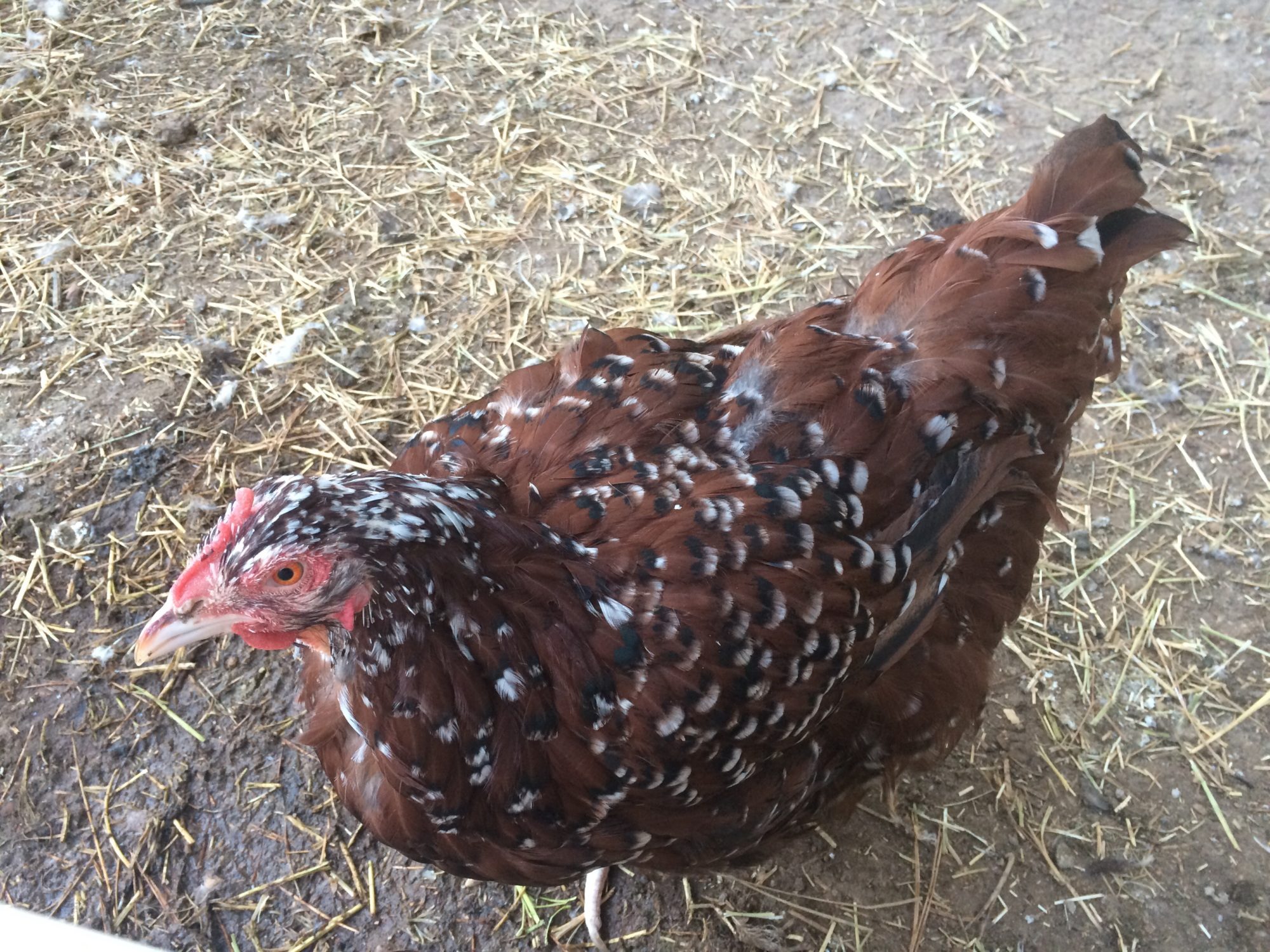 Hi there everybody! So after something like a year of searching, I finally acquired a Jubilee Orpington hen to go with my Jubilee Benedict. As pretty as his crossbred babies are, I'm excited to produce some purebreds next spring. She's just gorgeous! Still no name yet, though. Here she is last week.
