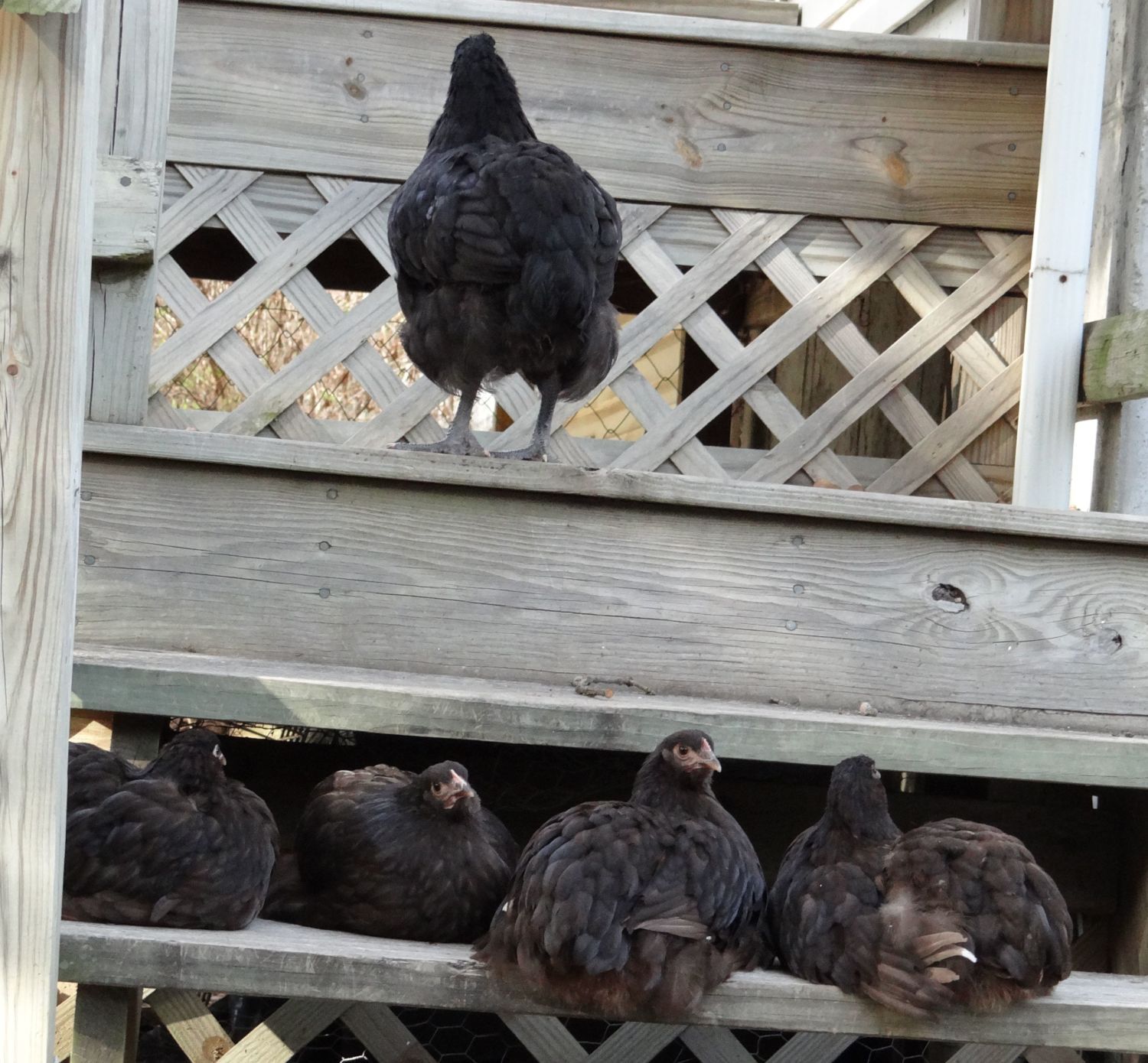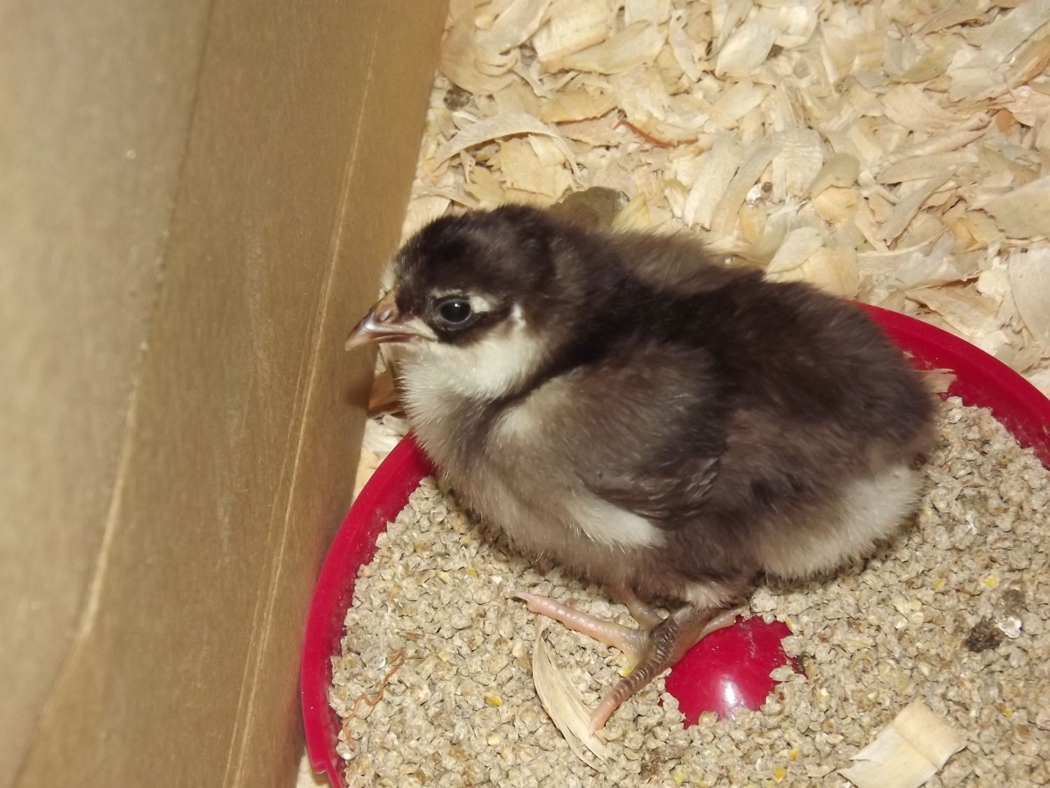 Chocolate Orpington new comers. They seem very happy to be here. All of my hens went broody. I have 10 more eggs due to hatch in a few days. This might be it for the year. The first one is 1 1/2 weeks old. The others just hatched. I had to put a divider in the brooder to keep the older chick from harming the others. I'll remove it in a few days. Ain't they pretty?