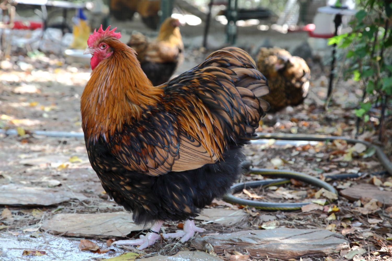 Here are two of the cockerels. One is what the reddish gold ones look like and the other is what the blondish golds look like. All nine have scabs and bruises on their combs from the all too often rough play.