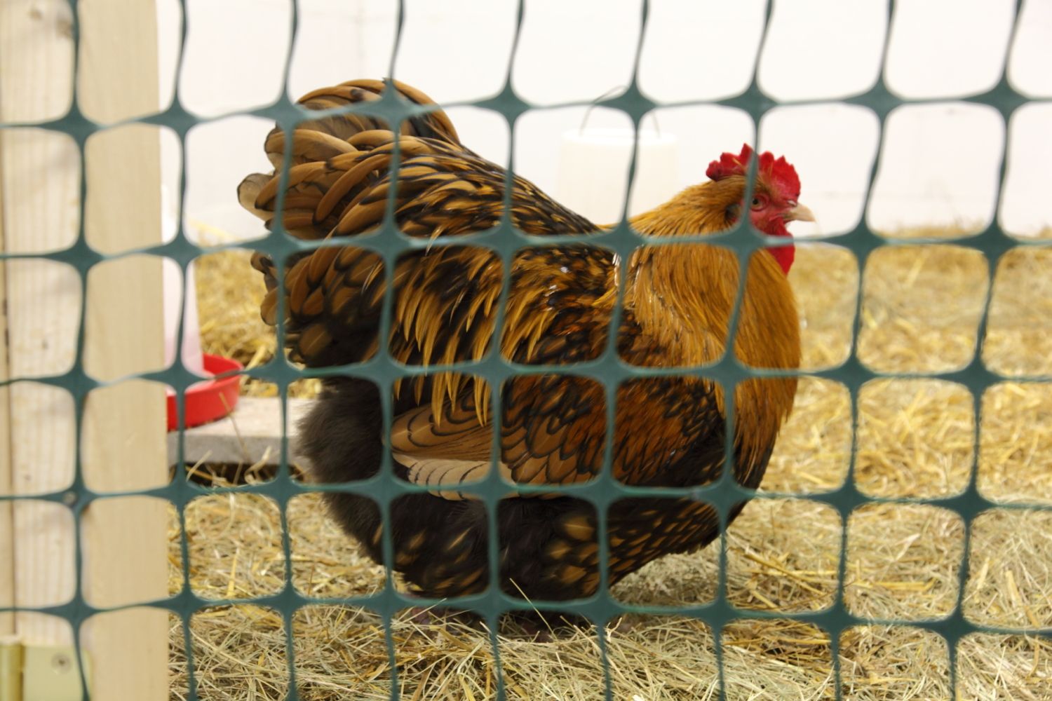 boo boo the english Orp, sorry about the poor photo quality..He hears a hawk..funny they know the difference in bird calls and act accordingly, they all ran to the barn..I think Blue Jays can sound a lot like hawks but they seem to know the difference. We had to use some cinder blocks to make sure things didnt fly away in the noreaster..