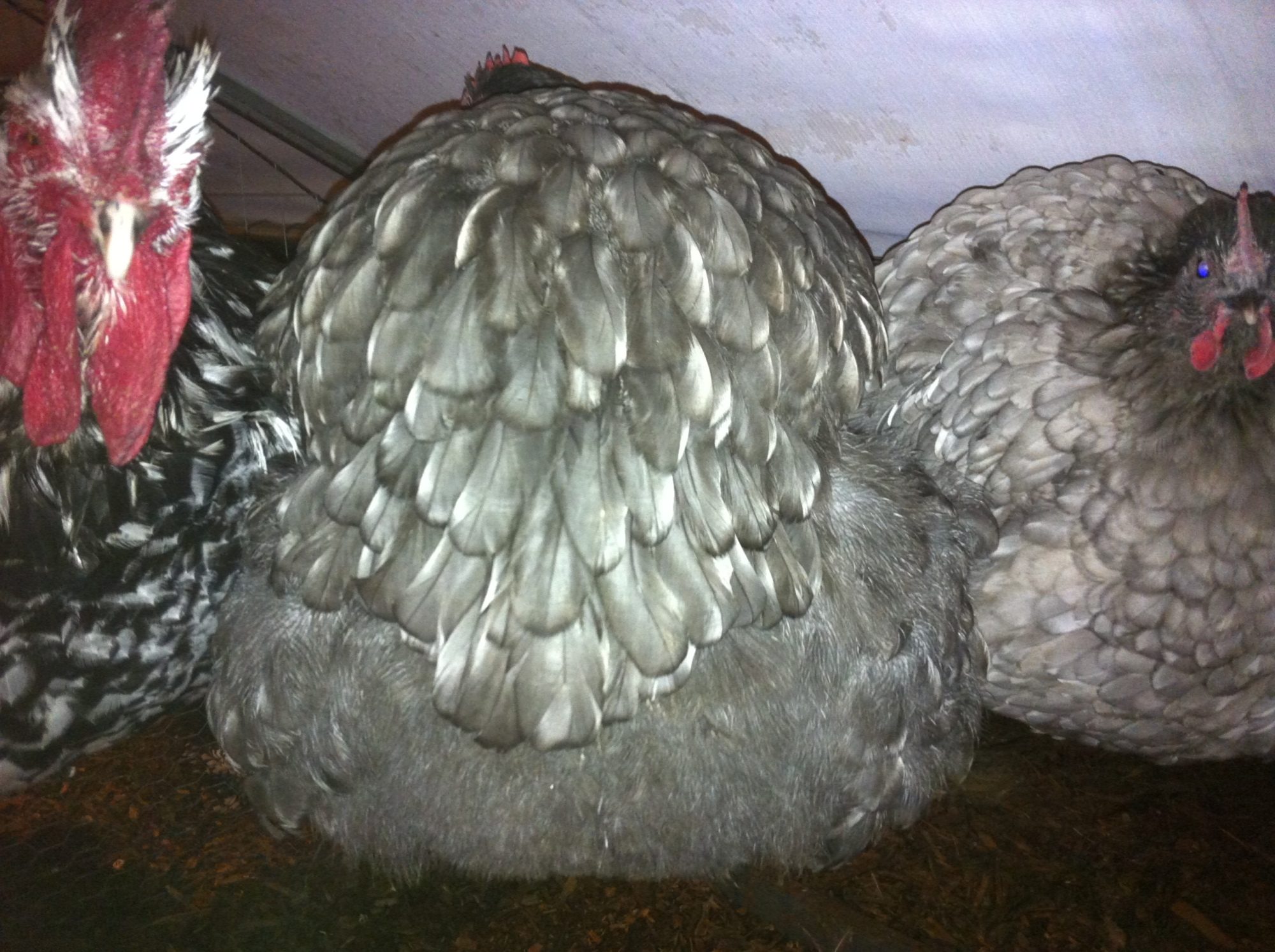 This hen here looked like this and then she molted and was completely black and then molted and was more traditionally mottled. The next time she molted black again