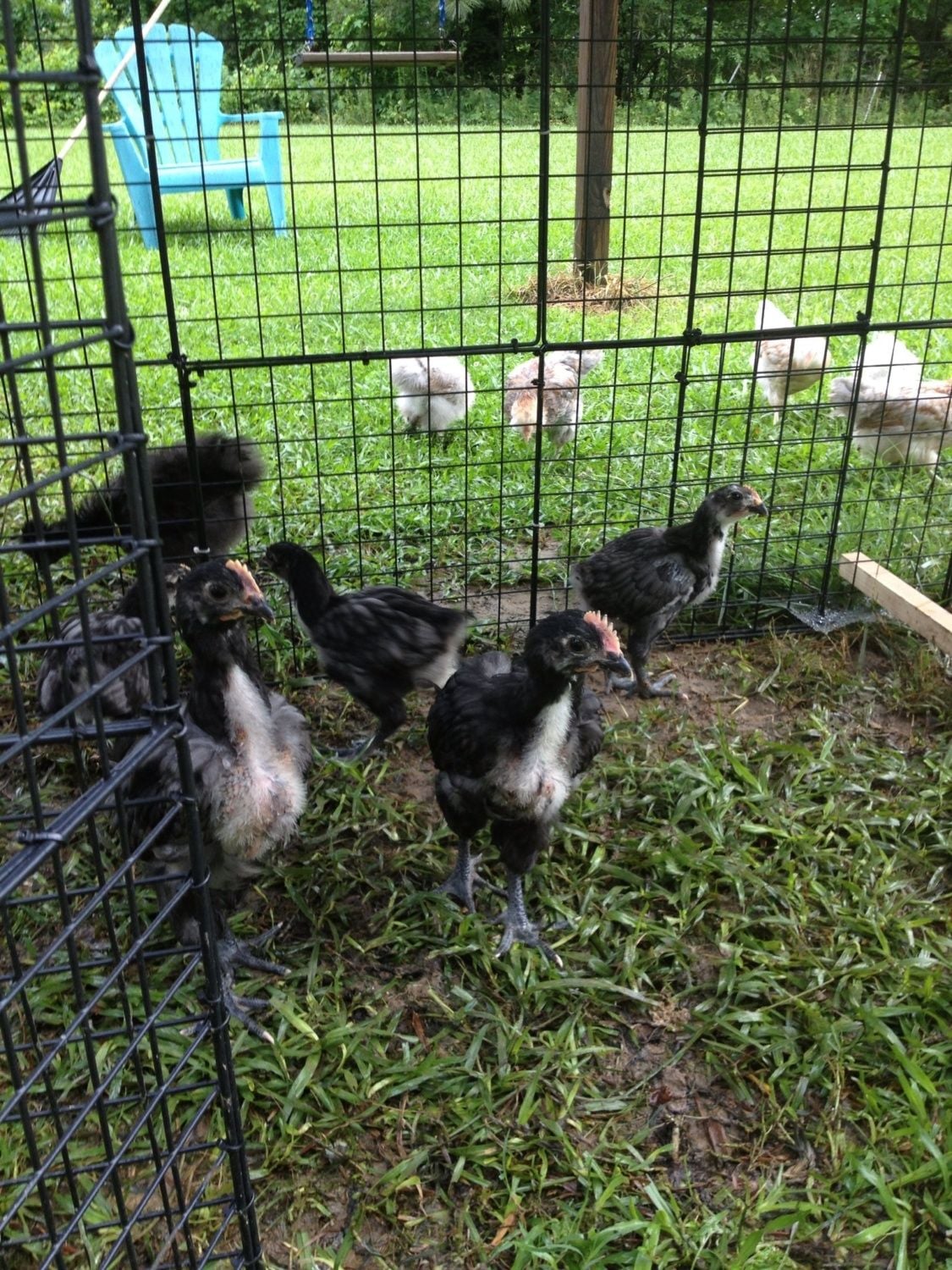 My orps are currently in the awkward no feathers phase... But they very much enjoyed stomping around in the mud after the monsoon rains we had today!