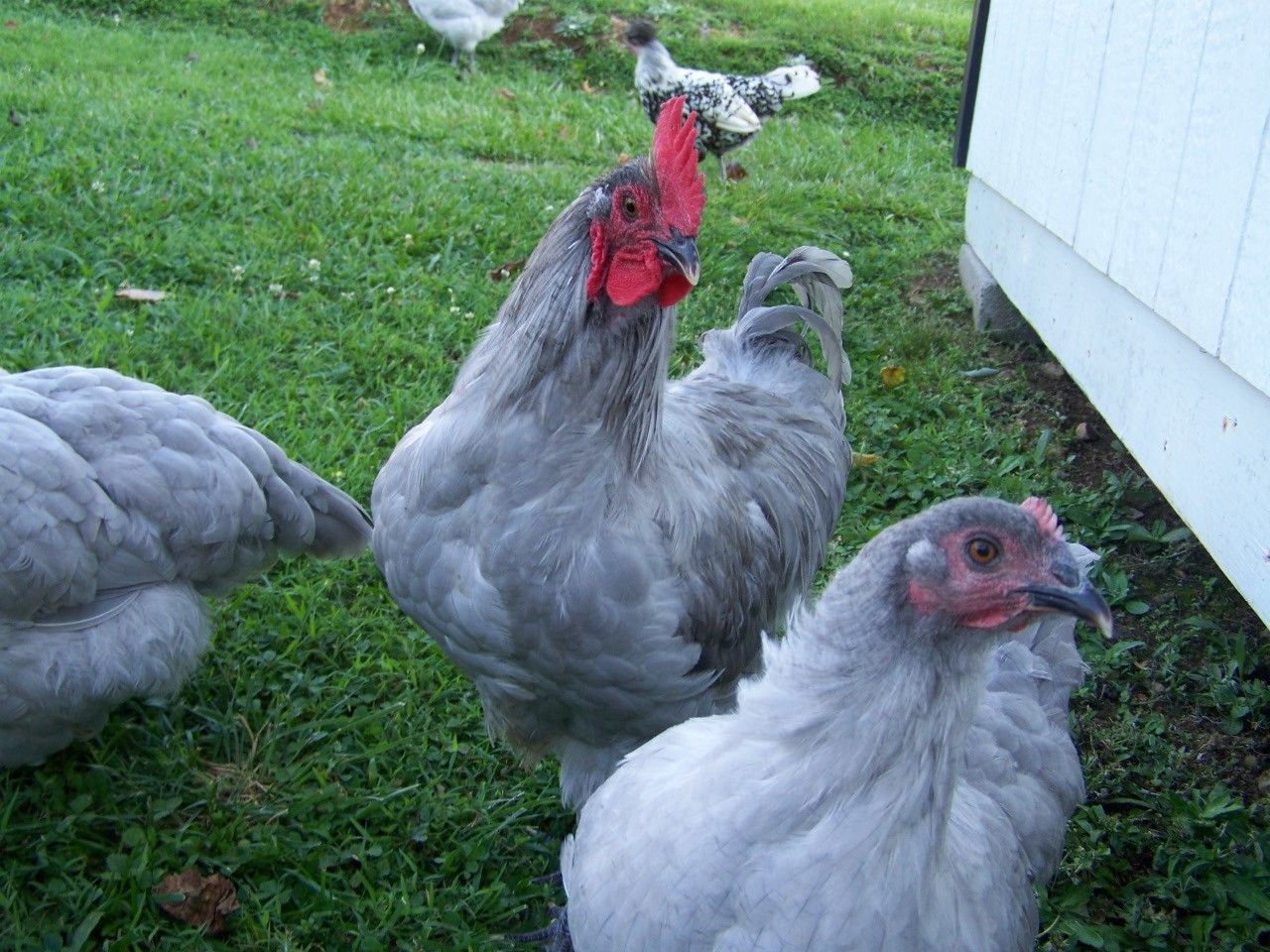 Every body looks healthy and happy. Are you sure that the blue girl is with "Mr" splash ? Looks like it might be a pullet. If you can put a bit more depth of keel and fore chest on these BBS birds, you'll really improve them. That's all your splash favorite needs to be a really top bird that fits the US SOP.
