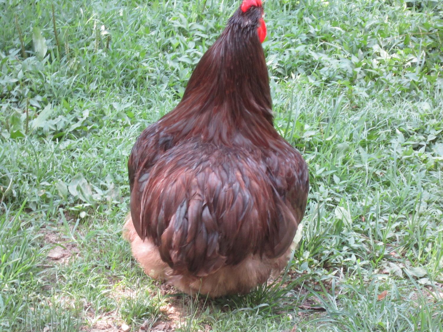 Hey guys. Its been very busy and so hot here. I wanted to add a few pics and see what u guys think. Here is an update on my LF chocolate project. This guys father was a black split roo who was an 8th bantam and mother was a quarter bantam chocolate. Everyone meet the Count. To make it easy lets just say he is a lil more then 75% LF but 100% English blood. He is 8 months old now and just becoming sexually mature. He will b bred over pure english black LF hens for the next generation. At least this one will be sex linked LOL. I have worked very long and hard at breeding these up to LF and plan to stick with my project adding in new blood as I go rather then buy LF chocolates. I like knowing the background. This year the hens I am using r no relation to this roo. This is one of many projects I am doing with the imported orps and will update info on others as I have time. Everyone please meet The Count. He was the only one to make the cull.