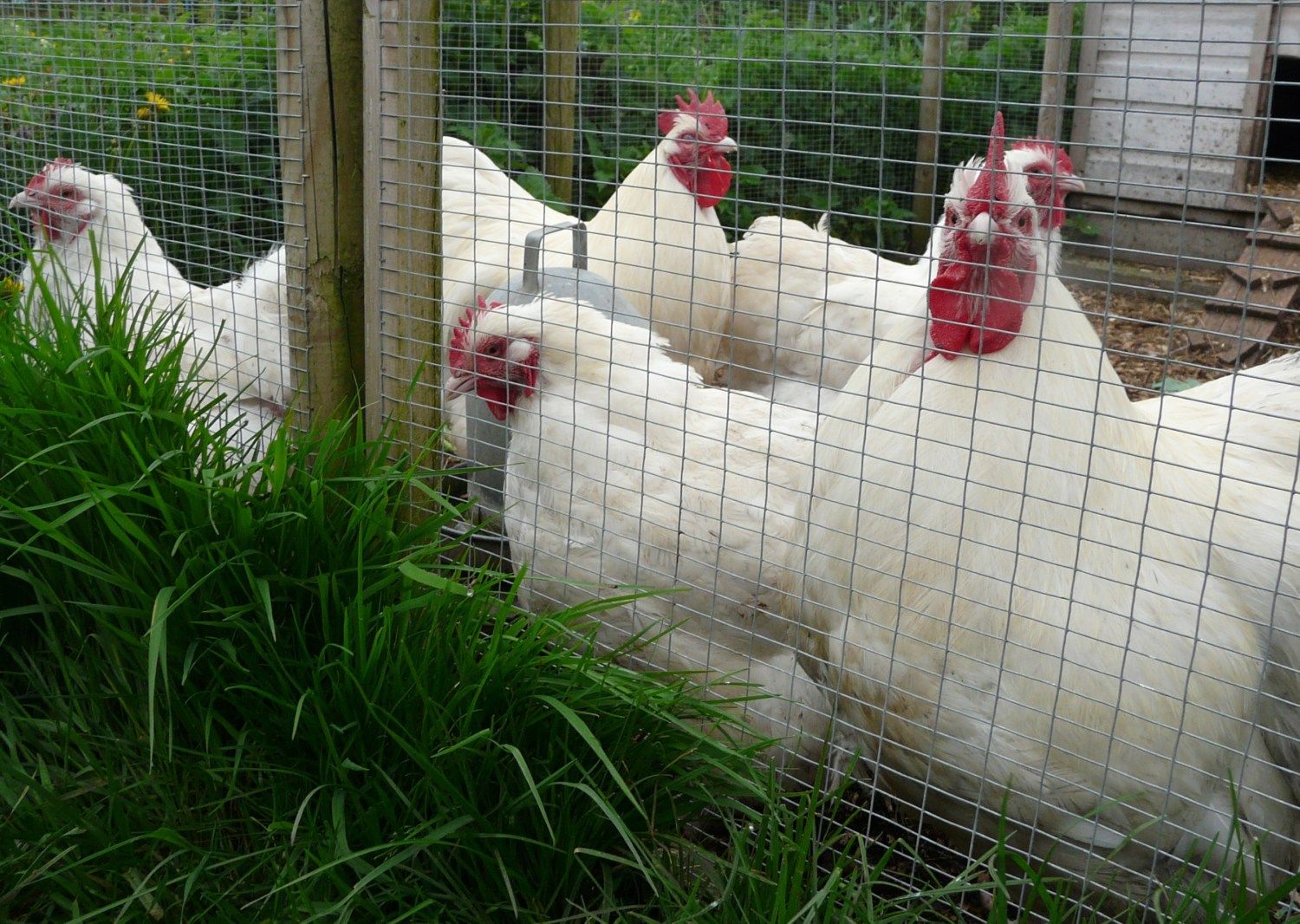 Look at the heads on those 2 front hens in the last photo ! Nice skulls. The one in back is hard to judge as she is in a heavy molt. No droopy wings here either.Pretty girls !