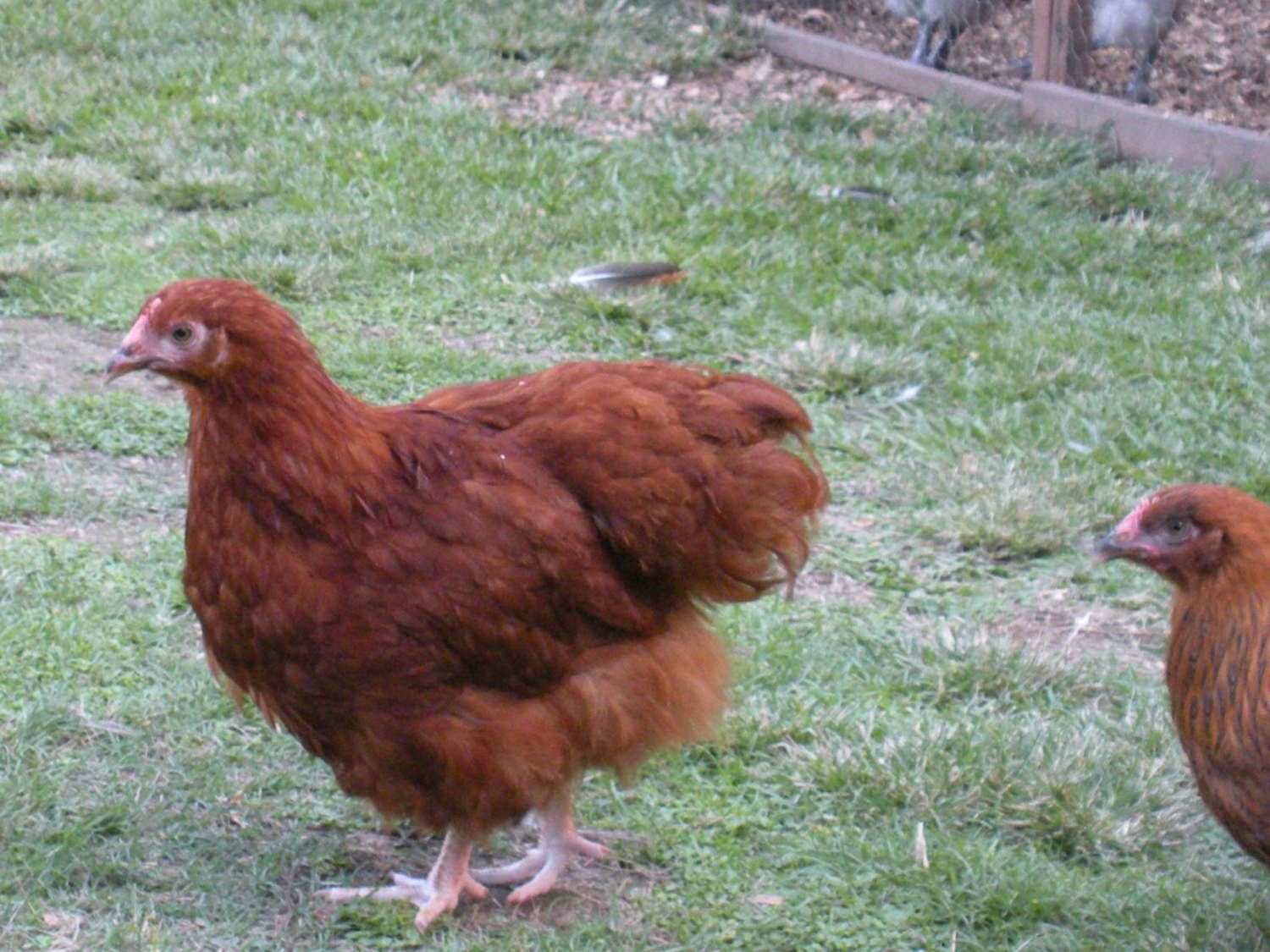 Here's a few pics I took today of my GFF white Orp chicks, they are just at 3 mo old now. They are so hard to get good pics of, they are much prettier than these pics show!