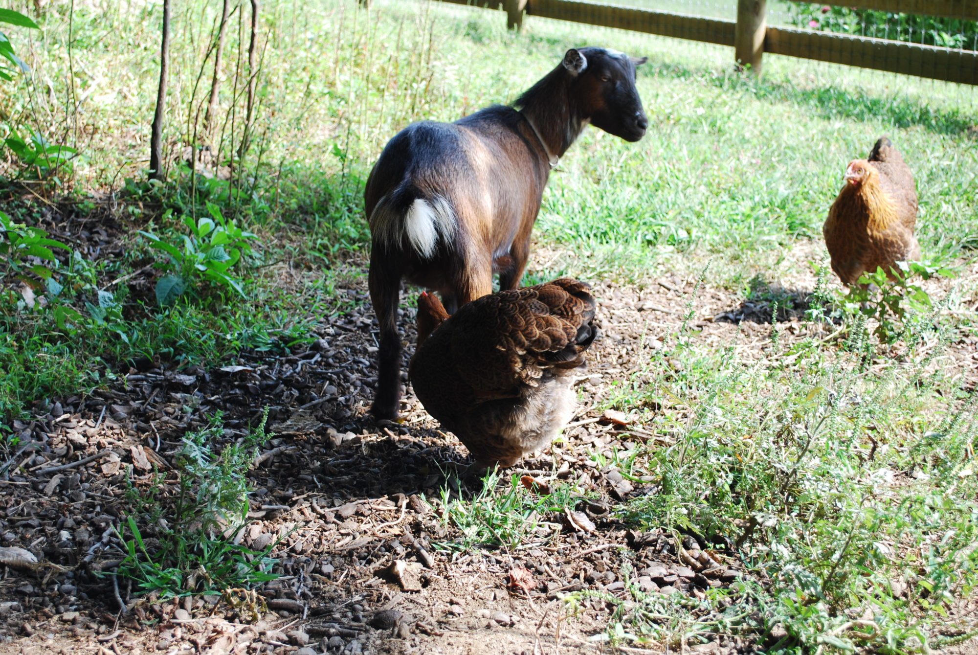 Can you guess what this lil girl did? Yup, grabbed right onto a teat. My goat, Candy was not a fan of that move. Turned, reared and tried to head butt her. Silly pullet.
