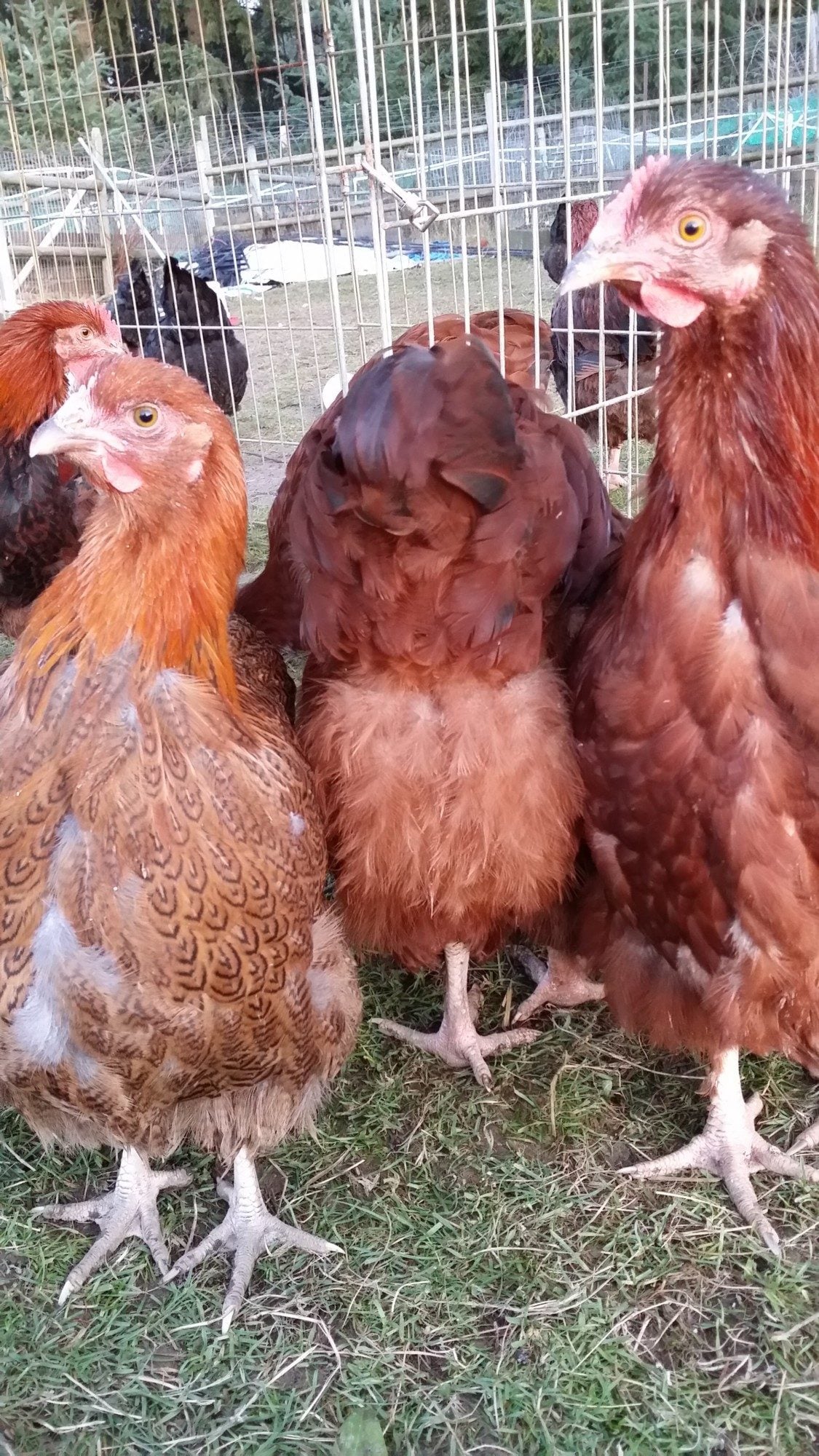 They are missing some tail feathers where I had them housed with older Jubilee pullets. I now have them in their own separate house to recover before the breeding season!