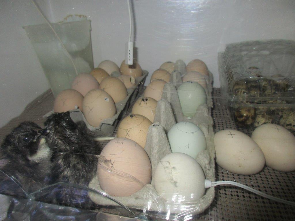 Still have more pips in the chicken eggs & now the quail eggs have started popping.
