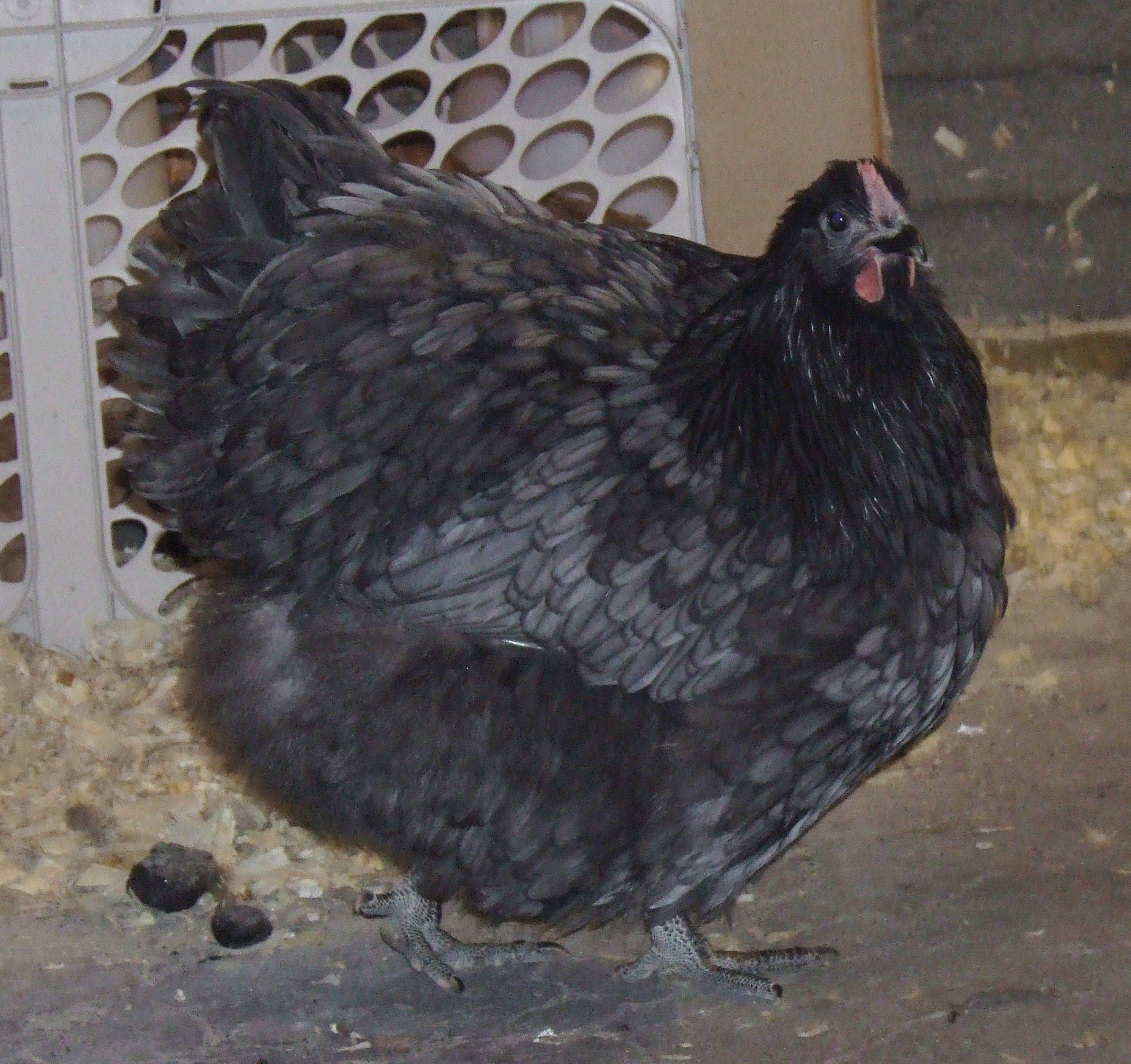 Oh Jimmy, she is just BEAUTIFUL! They do get really big pretty quickly, sometimes it feels like overnight they just double in size. LOL. I hope they start giving you fertile eggs soon, is she laying yet? Most of my girls don't start laying until they're around 8 months old. I've got some young pullets at home that are the same age as your pretty little thing and they're just now getting pink in the face. I need to get some updated pictures.