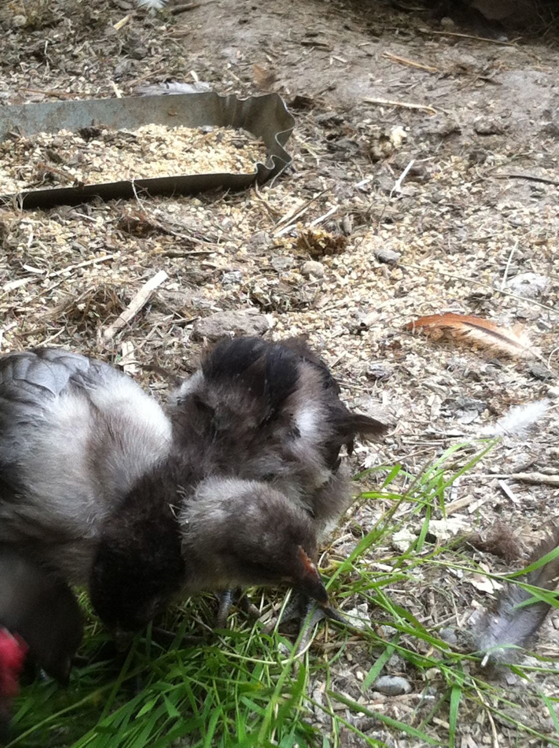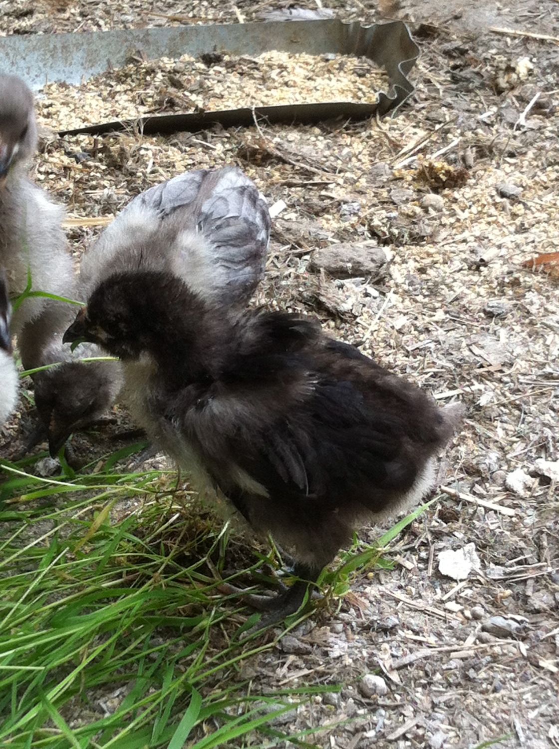 I don't know if you can tell or not, it was hard to get a good picture with a contrasting enough background, but this black chick has some wing feathers sticking out like a frizzle. None of it's three hatch mates does??
