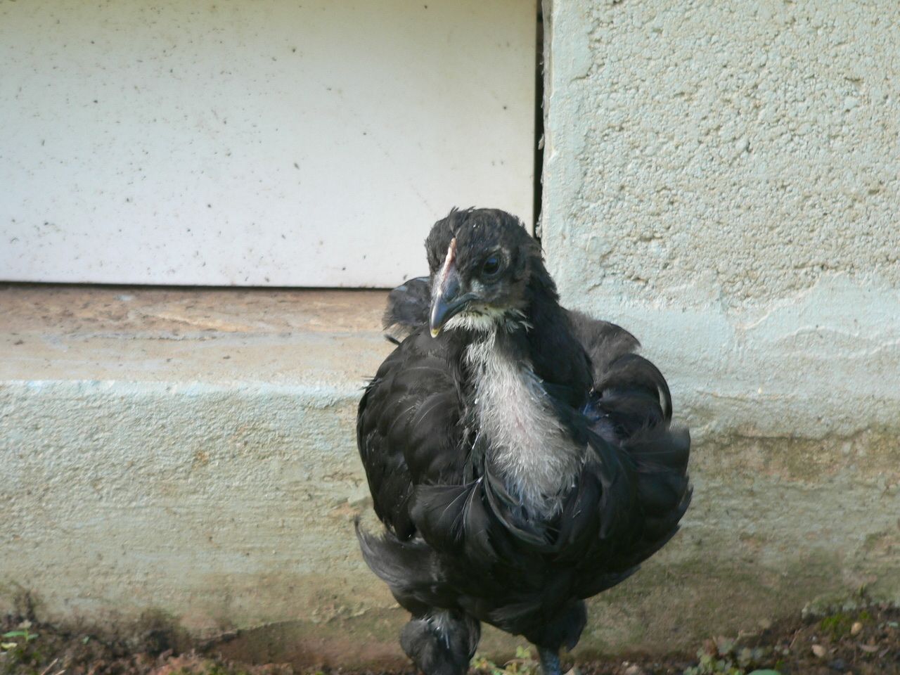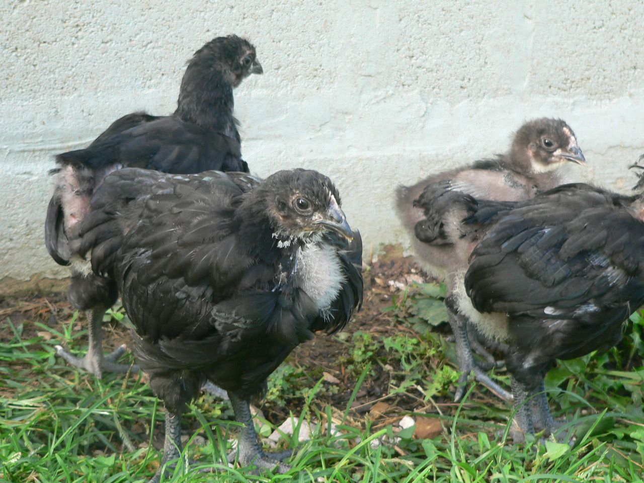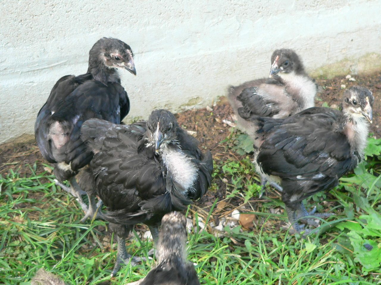 Quote: What I find interesting is that he seems a tad bit smaller than the pullets. The black on (seen in the middle) is probably the larget of all of the 5. The splash would be the next largest. I have not lifted them up for awhile so it may just be fluff.
