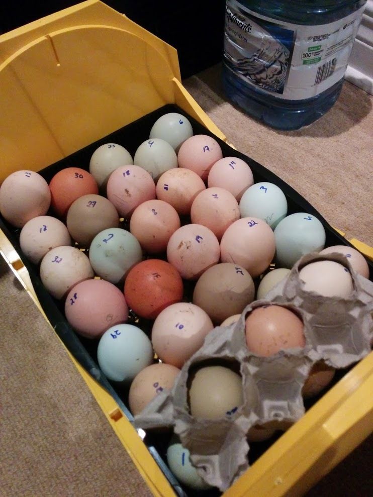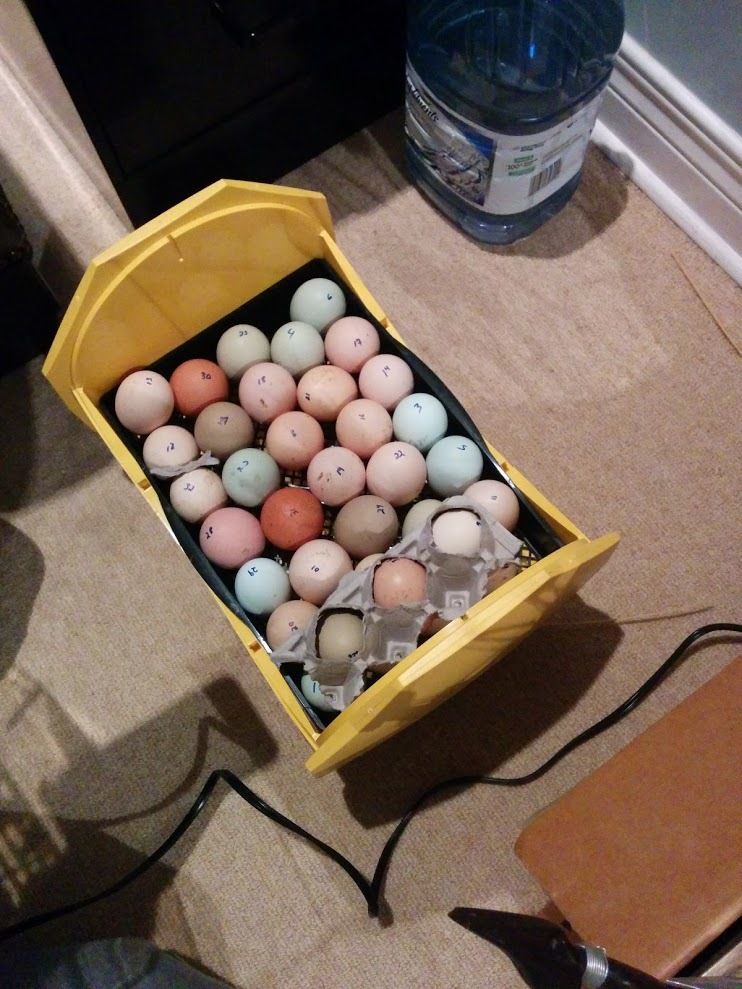 BUT. Today, it seems that our luck has turned. This time, we ordered 30 eggs from a new breeder to account for cracked eggs, infertility, etc. Except that they were packaged really well and we now have 35 eggs. Not a single one broke.