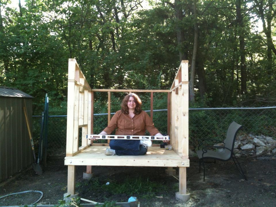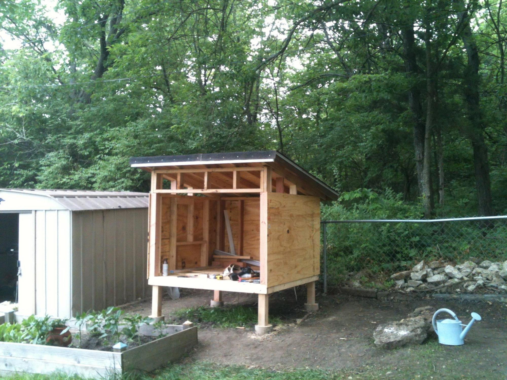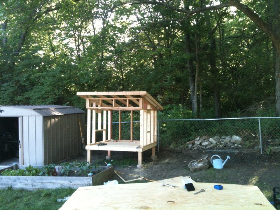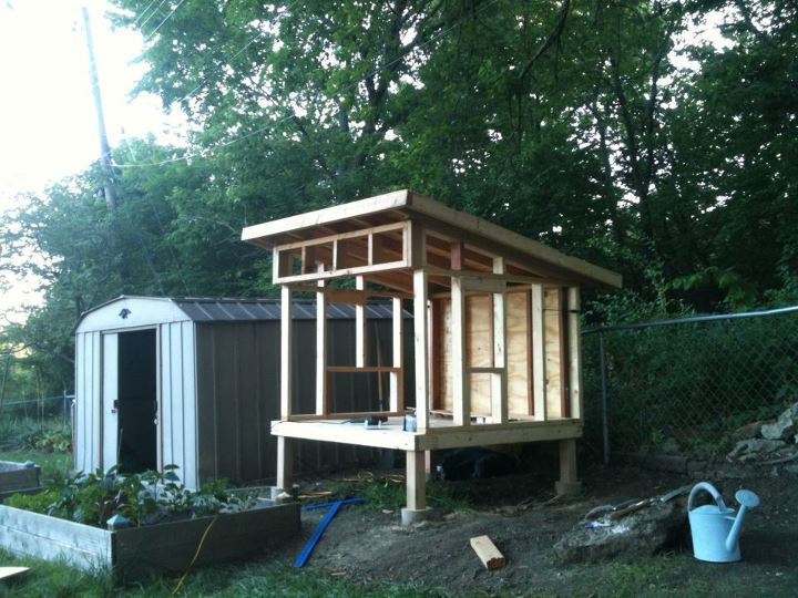 The coop is looking great!! I'm jealous. When we bought our coop it was in late Novembwer and we were desperate to get something before it got too cold. We ended up buying a $200 5 1/2 x 3ft coop on craigslist. It's good, but it's so boring looking and very difficult to get the eggs out.Coop v2.0 update - I was able to get a lot of work done on the coop this weekend. I got the roof installed, nesting box built and installed, chicken access door built and installed, people access doors built, and I have one of the people access door sides trimmed out. Now all I have left is get the other people door trimmed out and both people doors installed. Then, I will have to get the nesting box trimmed out and the lid installed. Next, I will have to get the shingles on the roof and the nesting box lid. Finally, I am going to give the entire outside a good coating of stain. I am getting so close! Here is the updated photo album: