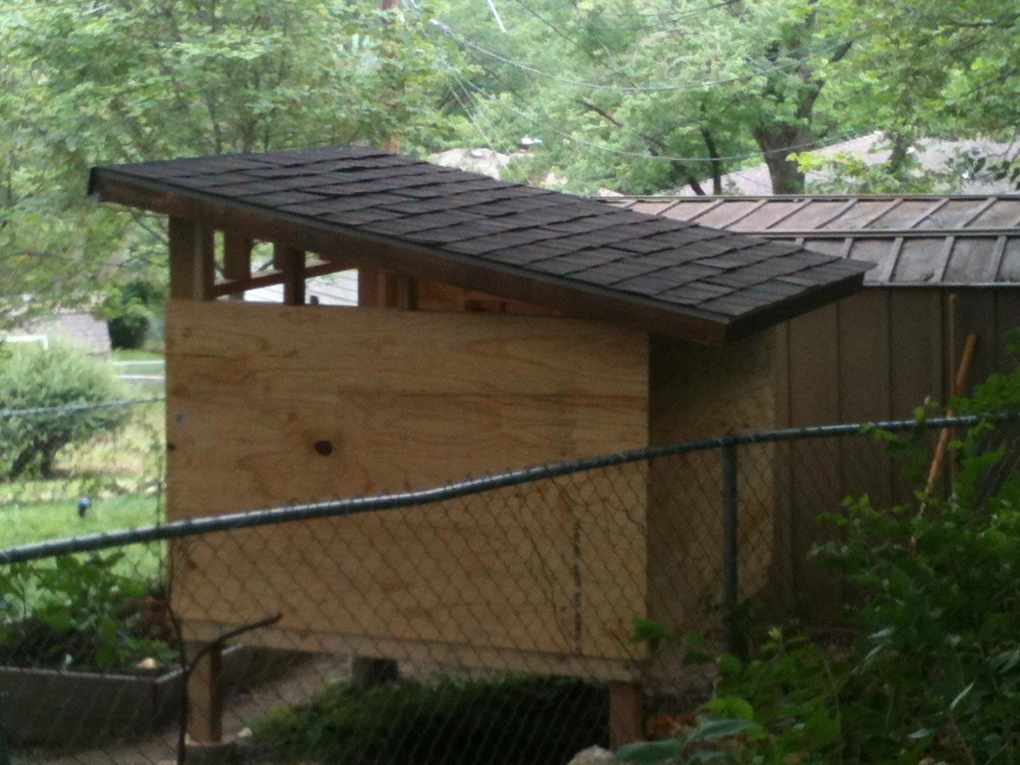Gifa - Could you post some more pics of the roof on your coop? Specifically, the front edge of the roof. I am tying to figure out how the heck I am going to "cap" the edge so it doesn't leak. Also, where did you get your shingles? My buddy didn't have the amount he thought he did and so I am having to look else where for shingles.