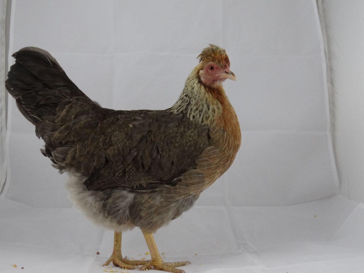Thank you. She's the closest I have to cream color in the hackle. She's about 4 1/2 months old. I weighed her today and she is 3 lbs 4 oz. I think she's going to be a bit small.