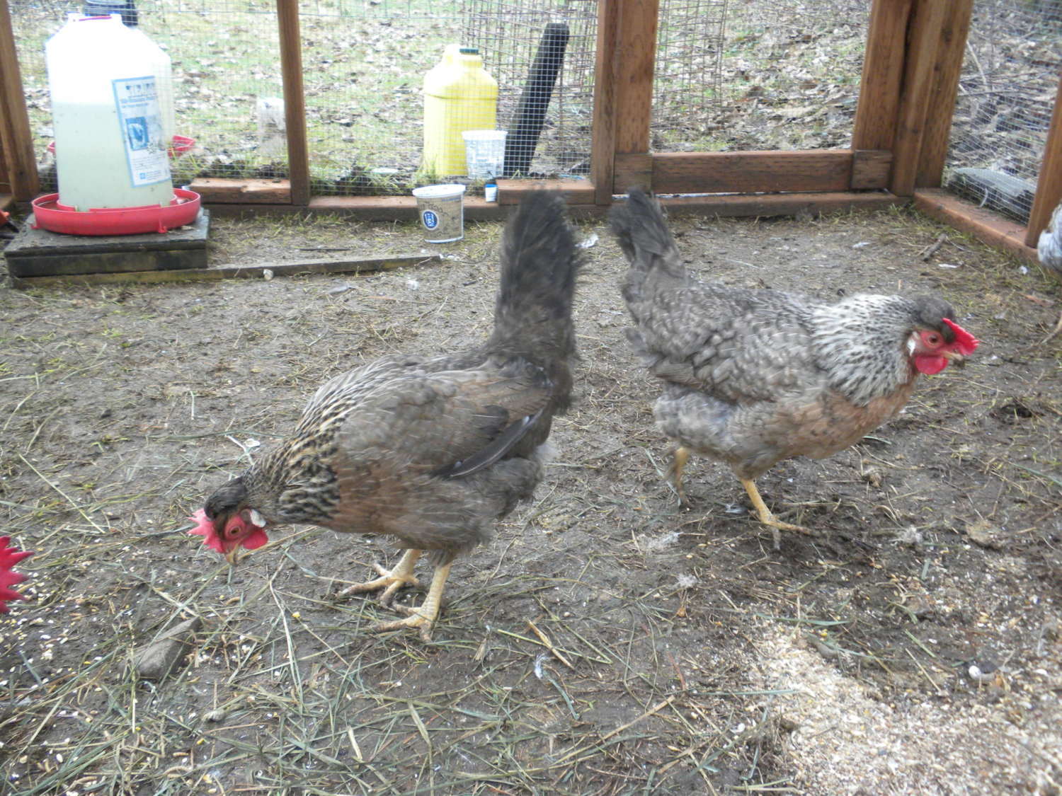 The pullets are a little hard to tell apart. One is Alice and the other is Bella