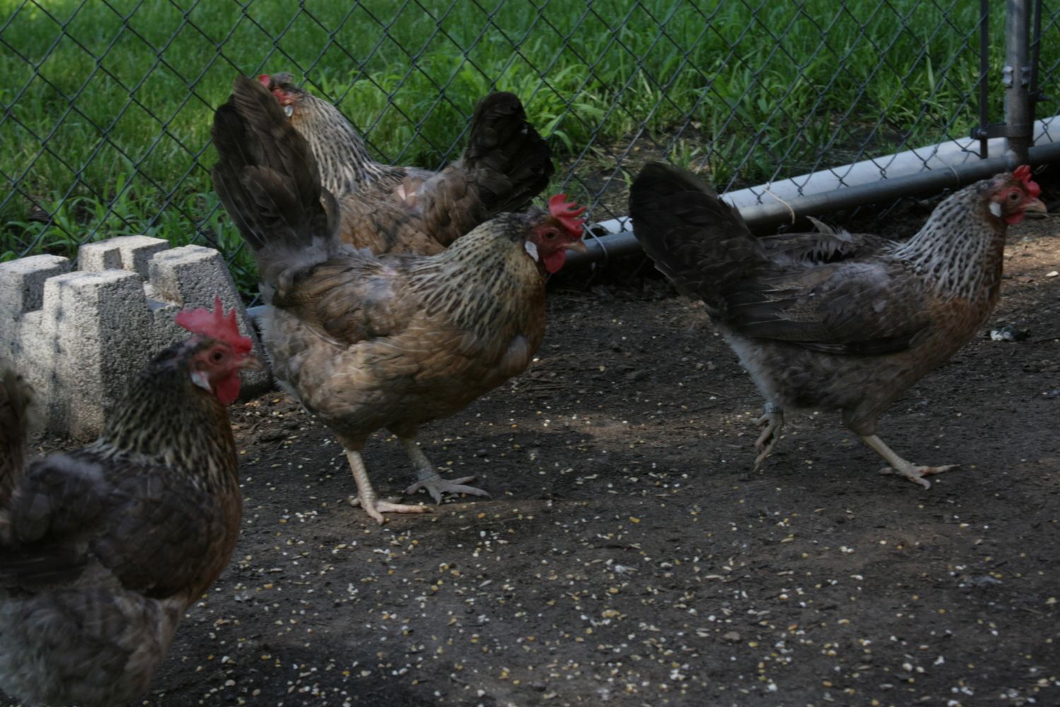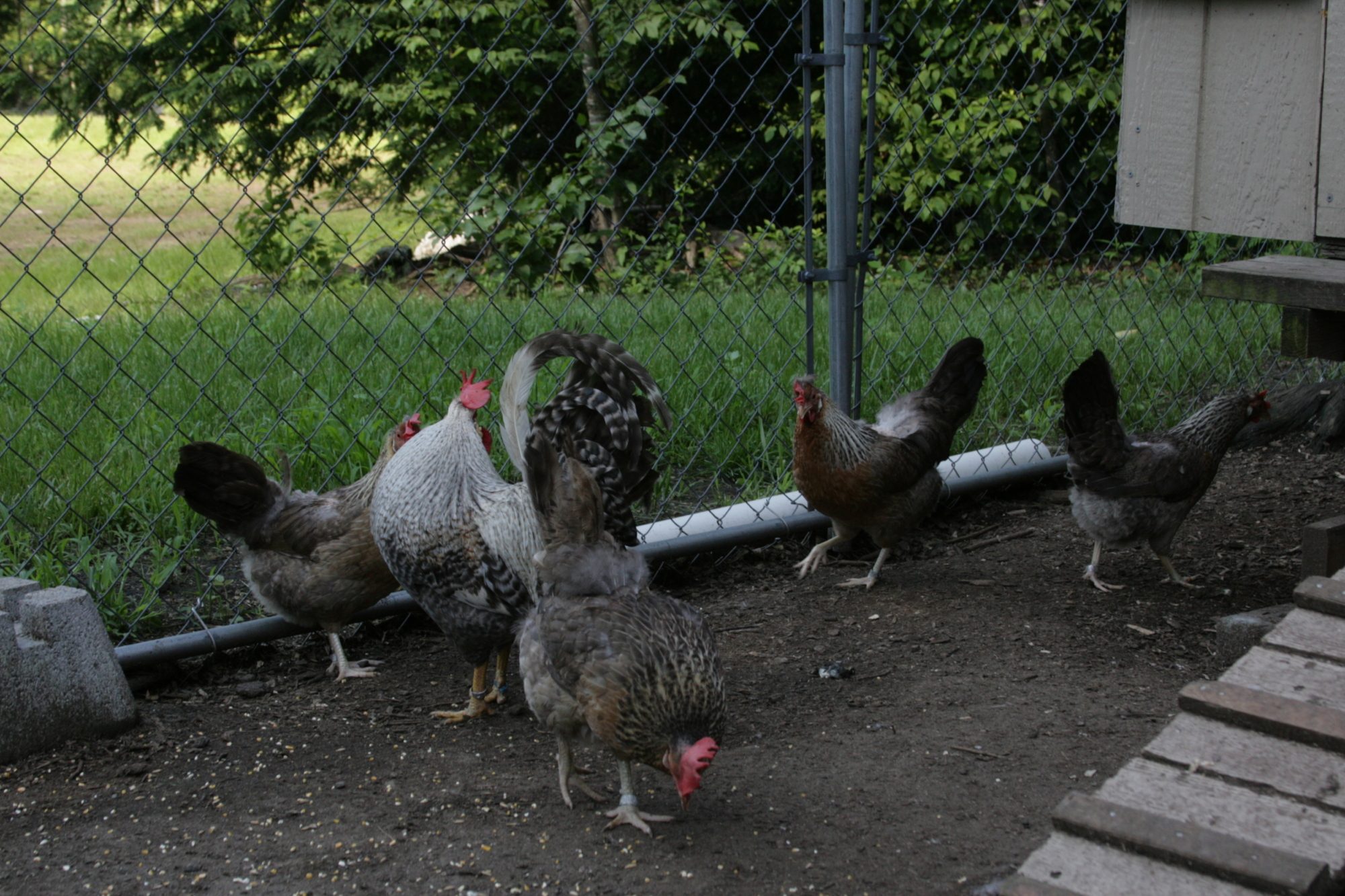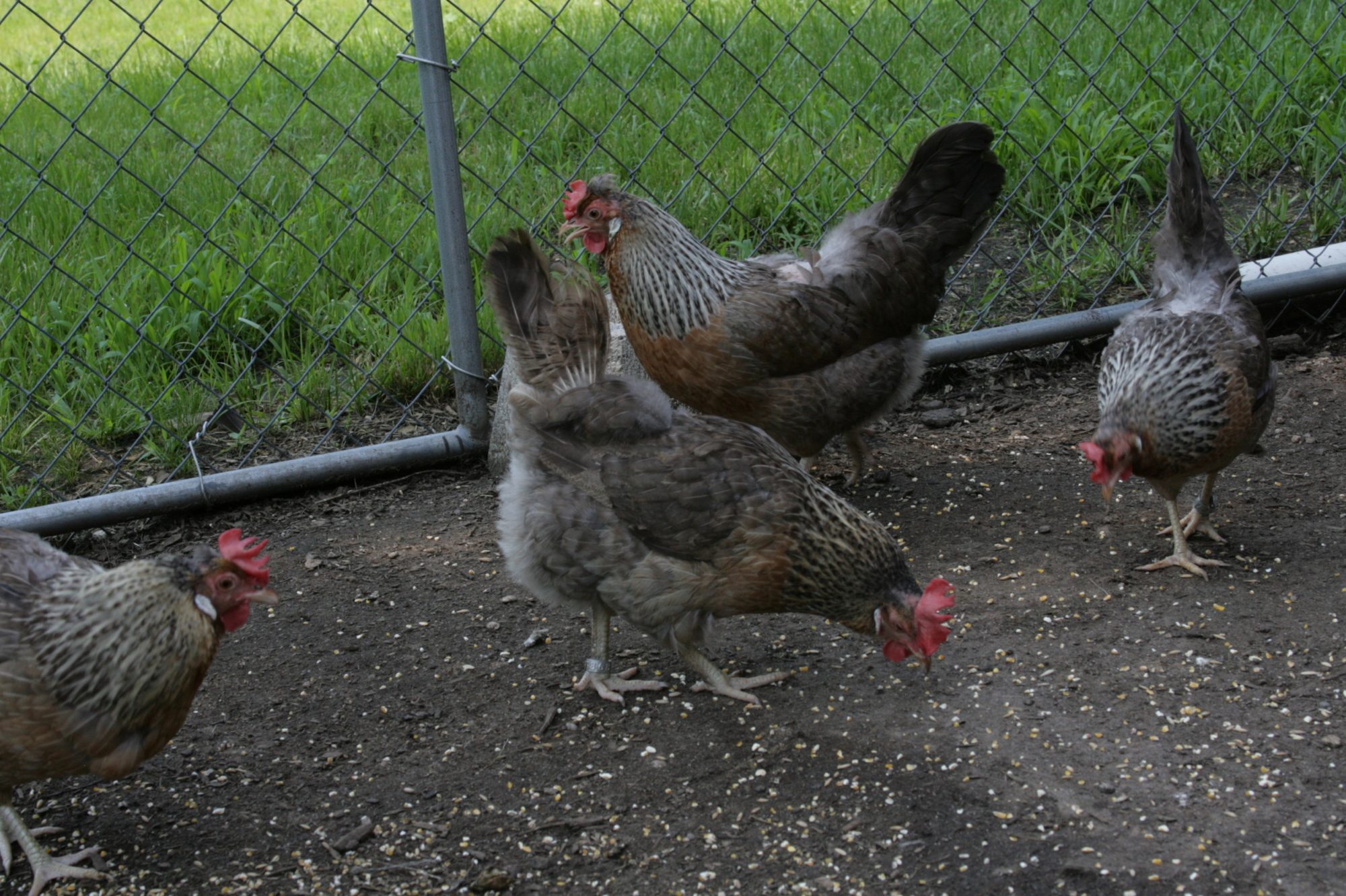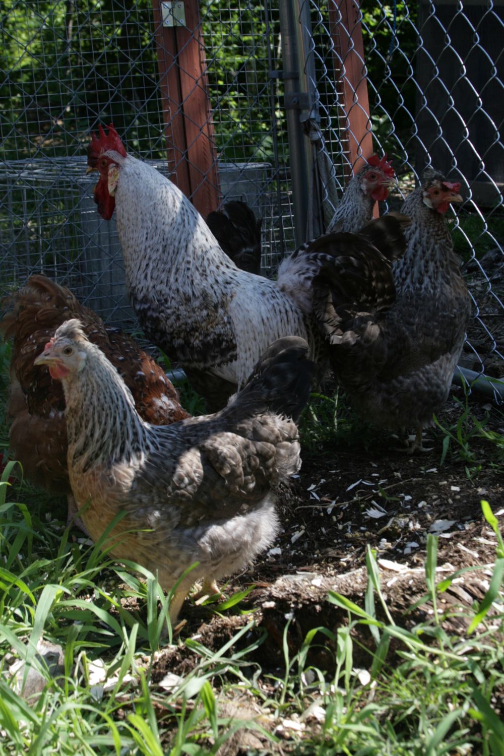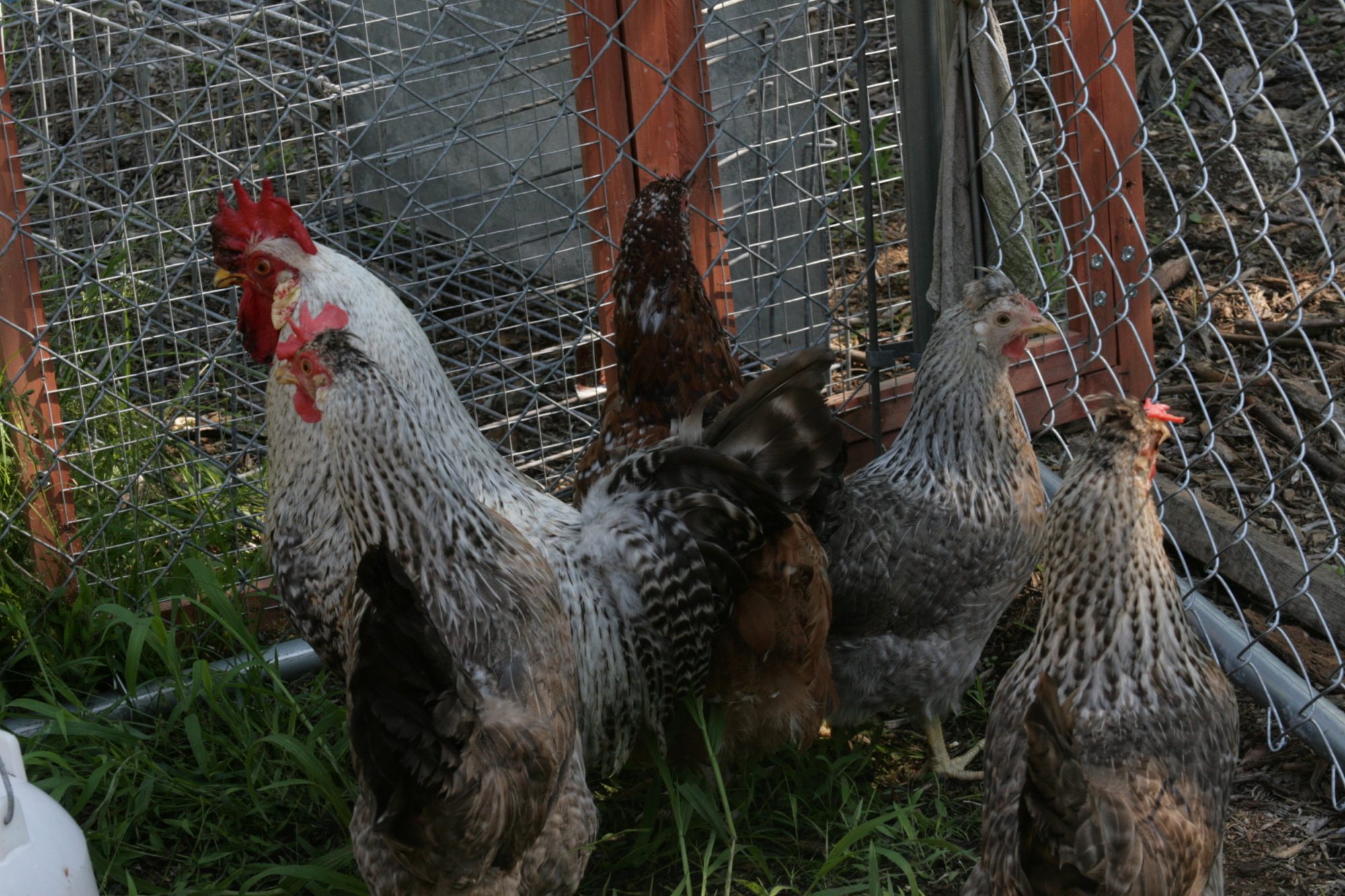They were hard to capture together. Macduff is just a smidgen less cream than Macduff but hard to discen. His tail is more squirrel. He has a crest with a nice comb. His hens are 2 gold and 2 cream. The gold hens lay my largest eggs. My original GFF girl's eggs are jumbo so I'm going to try very hard to keep her genes in the pool as her daughter lays a comparable one also.