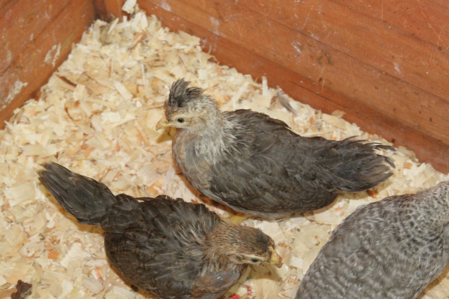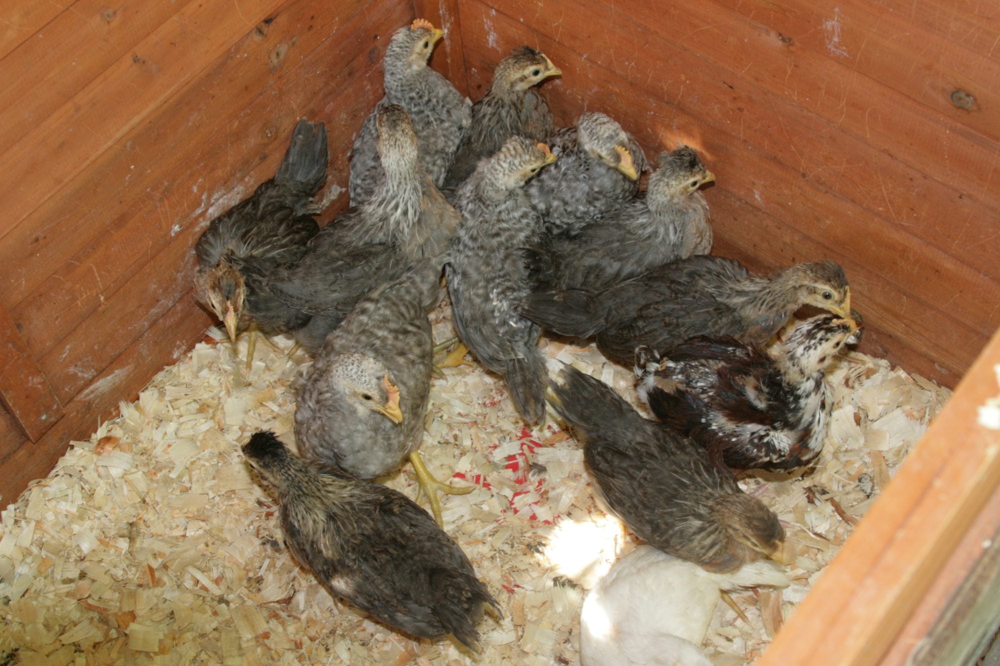 and some chick pics - hard to believe I culled so many chicks in all of this. Some of the girls are true cream and others are more tinted. There are 4 boys and 1 white female legbar and a Jubilee chick (male I believe) in there also.