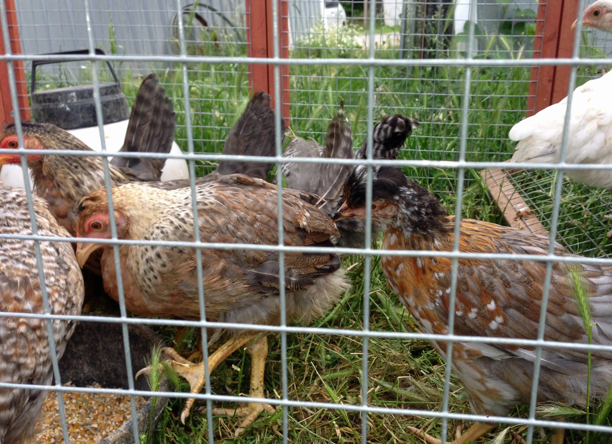 Here are the other Legbars hens that I have. They are to the left of her. I have three pullets that are four months old. I also have other chicks that range from just under one month to two months old. I await the reply from Greenfire on what Amelia really is.....
