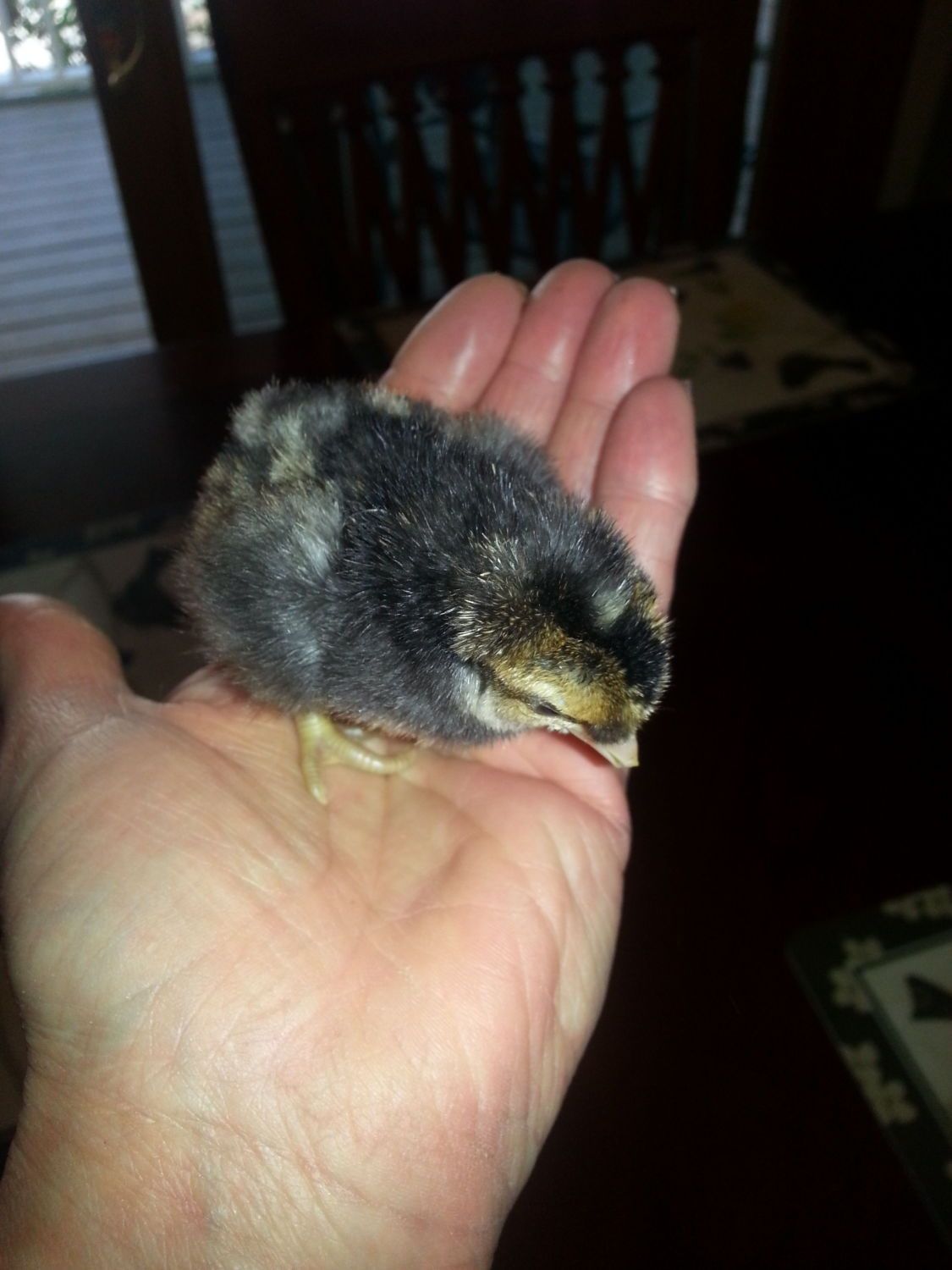 That is about what she looks like, just not as dark brown overall but the spot is the same. I have her banded just to keep an eye on her. I know what hen she came from and I haven't gotten any other spotted pullets from her yet but wasn't sure what other breeders were doing.