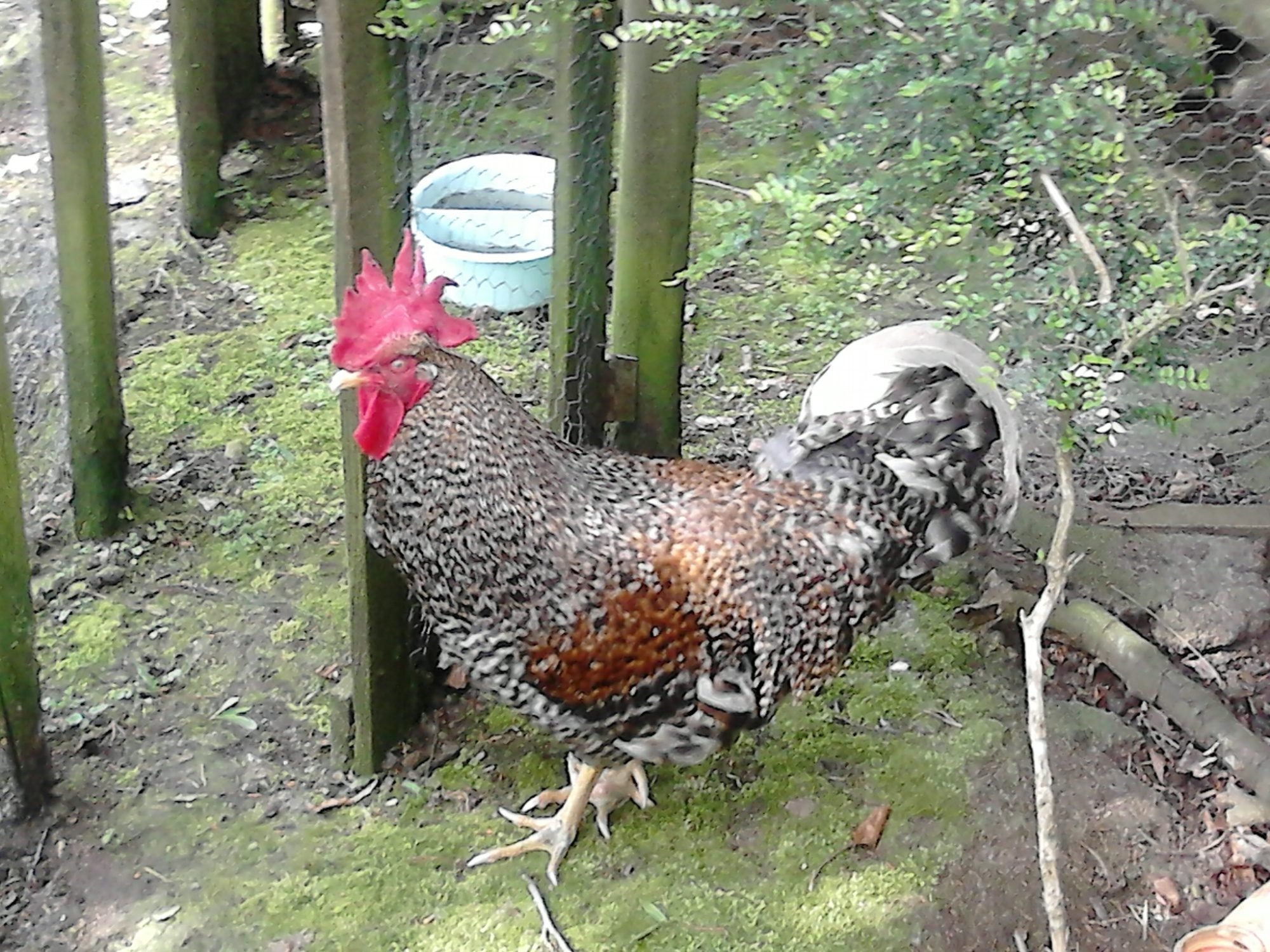 I hatched him myself from an egg that i got from a friend (she has moved away now and i've lost her number or i would call her and ask.) She also had so many different breeds i wouldnt know where to start thinking of which. His parents were probably pure, whatever breed they were. It was a pale blue egg and if he had been a hen he was to lay blue eggs, have a large red single comb and be a grey colour. He was to be a very quiet bird but i think hes just a bit more jumpy because of the way he has been raised, he wasn't handled much appart from the first week or so. Thats all i know about him.