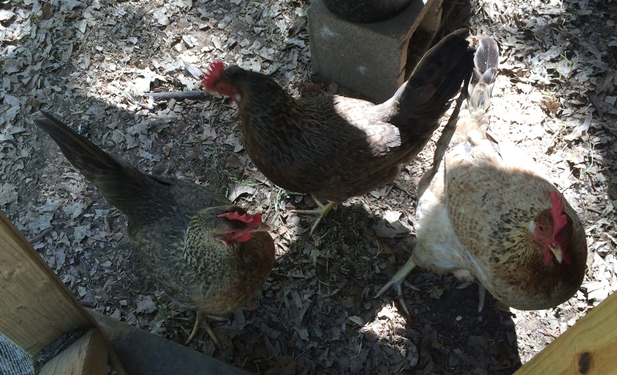 Just two of the legbars. This is the better of the legbars, I think. She has more cream in her hackle and less black.