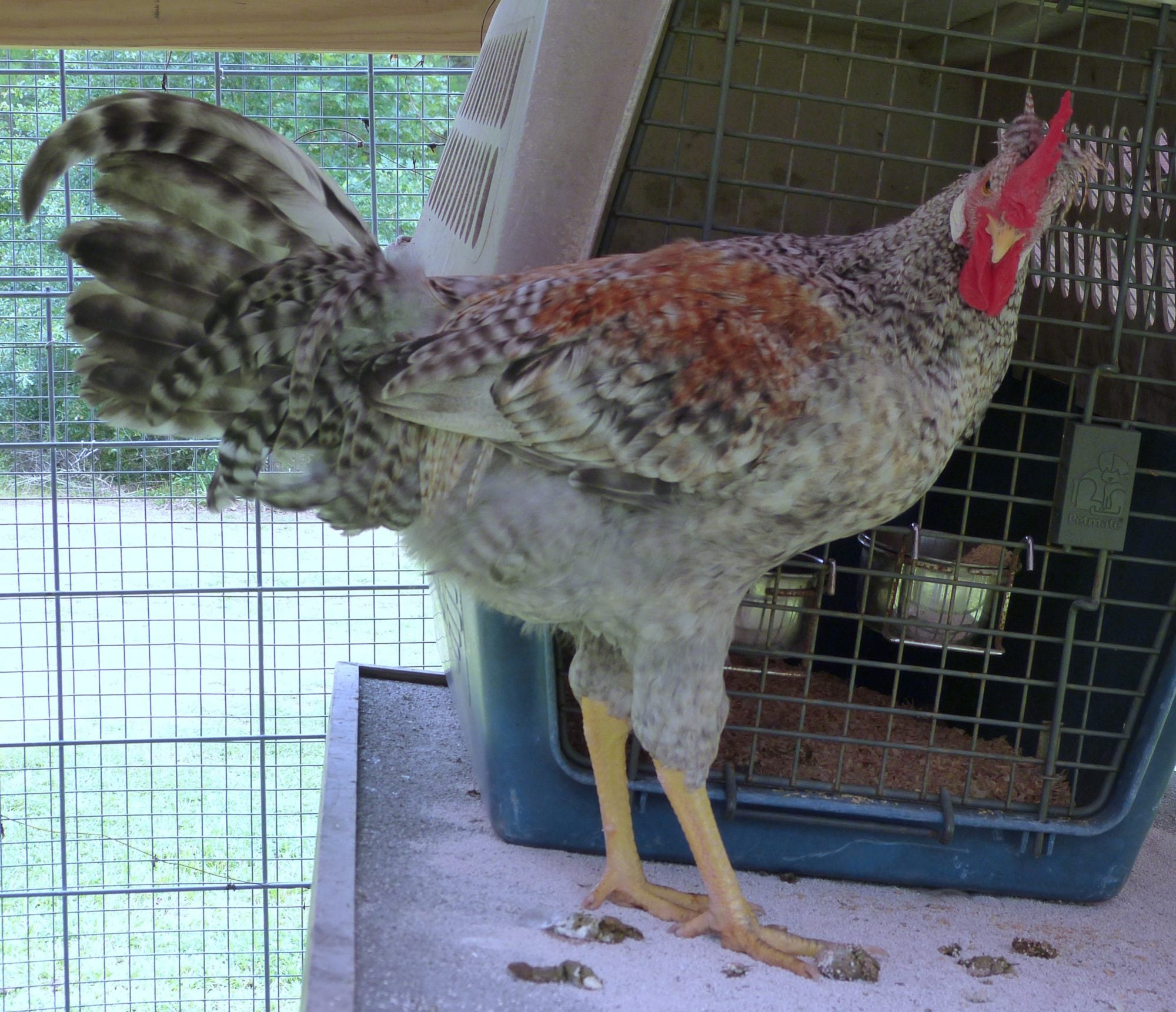He retains the long back, retains the high wings -- his comb has flopped - but I wonder if that is due to illness and will straighten - he doesn't look so leggy--- and he molted his wild random sickles that pointed forward....and his tail has calmed down -
