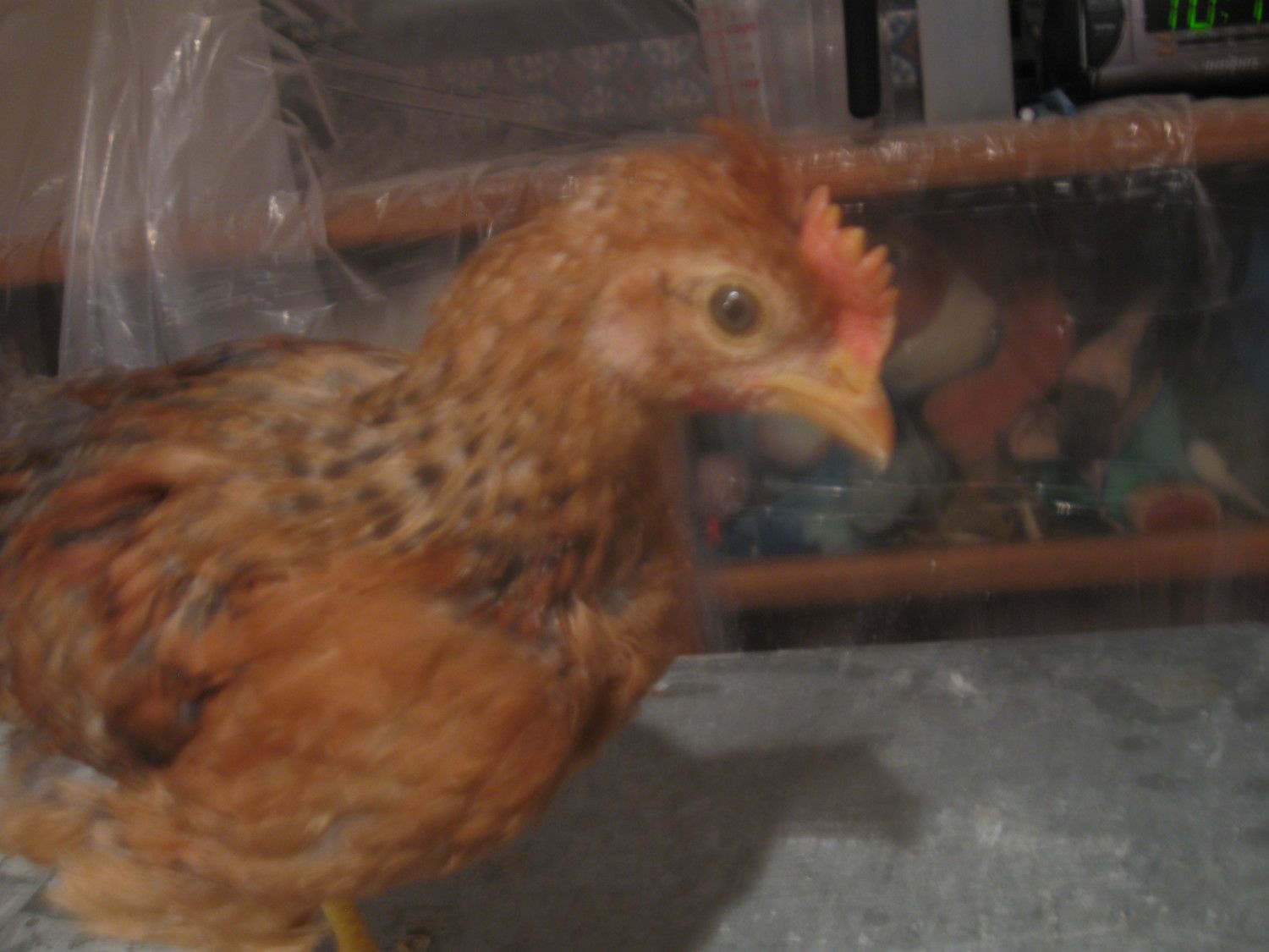 Today I caught and picked him up and massaged the side that appears to be pulling away from straight - for about a minute.... - and when I was done -- he really was a little bit straighter, couldn't believe that a result could show up so fast...but he very quickly reverted to the way he was before. -- Both these cockerels are equivalent, one is a week younger...but I hate to see one that could have promise be destined for soup if there is a way to avoid it. -- Of the two - the older one dawdled with his hatch and took over 12 hours -- but the younger one was fully pipped, zipped and hatched within 2-minutes...so I attribute that to a lot of chick vigor. -- but he is beginning to get a slanting comb.