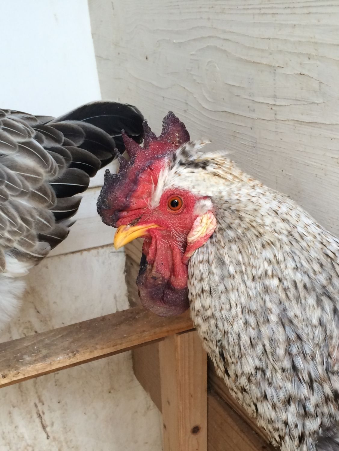 So of two Legbar cockerels from my last hatch - one is beginning to get a slanting comb (i.e. traverse the head at a diagonal)...Knew this was possible because the father had diagonal comb.