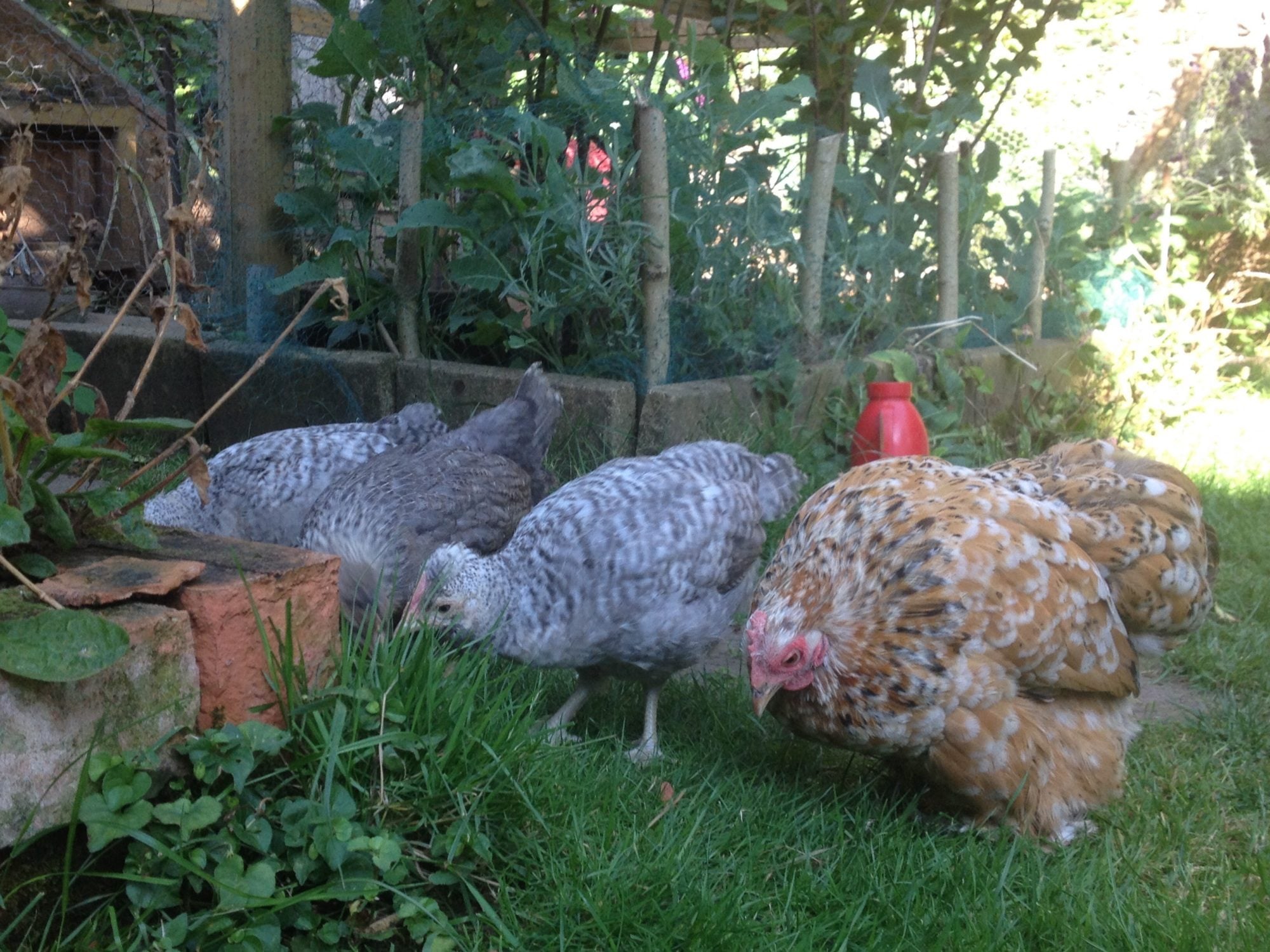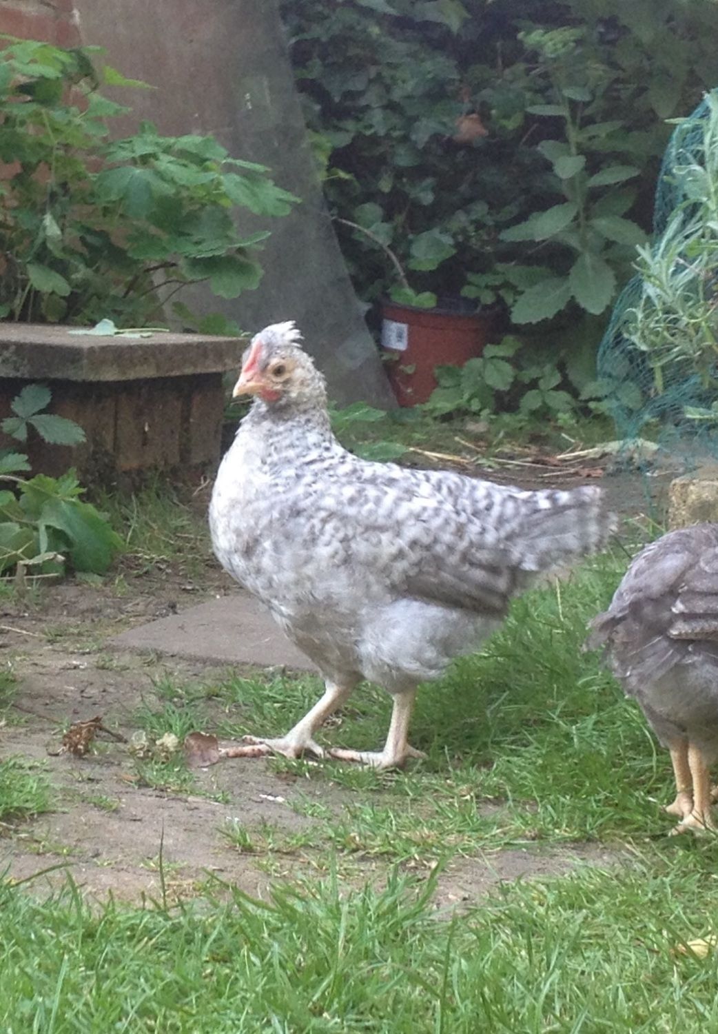 From that view -- I think that Sunny does look splendid. -- The bottom of his hackles and his saddles are a color that appeals to my eye more than the top -- His tail has great barring. His barring is regular.His breast is dark. One thing that I thnk is neat is how his wing bar -- what would be solid in a duck-wing is distinct. Like that look a lot. His comb and wattles -- Comb nice and straight and his earlobes white. He really is a nice example IMO - Also has nice tight and high wing carriage. He's a gem.