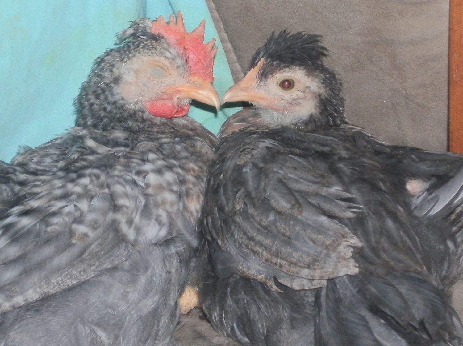 All three of my girls have crests. One of my roos has a straight comb and a nice crest. One has a big floppy comb and one is really small still.One of my girls doesn't have a crest either. I am planning to pair her with a cockerel that is very heavily crested (I got extra cockerels so I could be choosy). It will take me a few generation to breed the line to perfection, but I didn't expect instant results. I expected to work with it for 3-6 years to get to where I want the line to be.