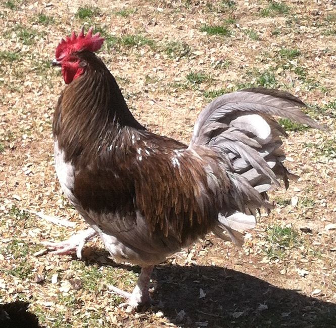 I LOVE that rooster! Is he an Ameraucana or Easter egger? do you have any wheaten hens for him?