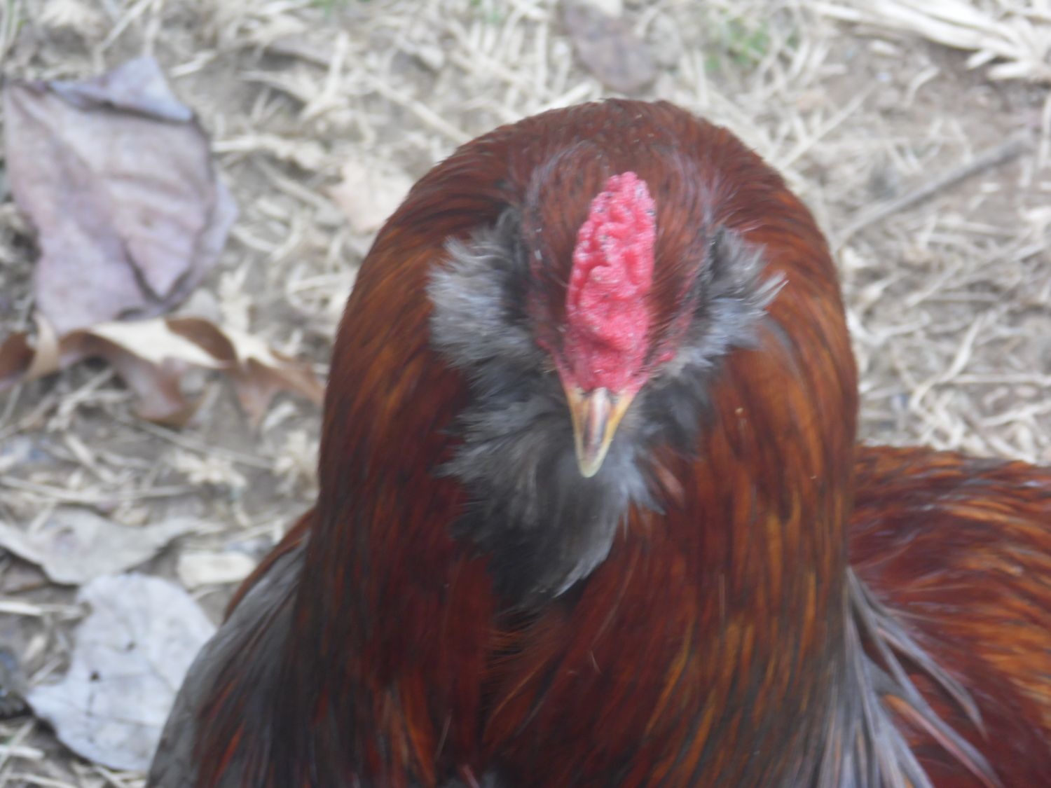 Love the pics of everyone's chickens. Finally got my camera out and so here are mine our rooster - The Governor The Ladies This is mumbles, unfortunate accident when younger and so she has no tail now, but very sweet My 16yo son's RIR, given to him by his girlfriend. These are not my favorites, kind of mean to the others.