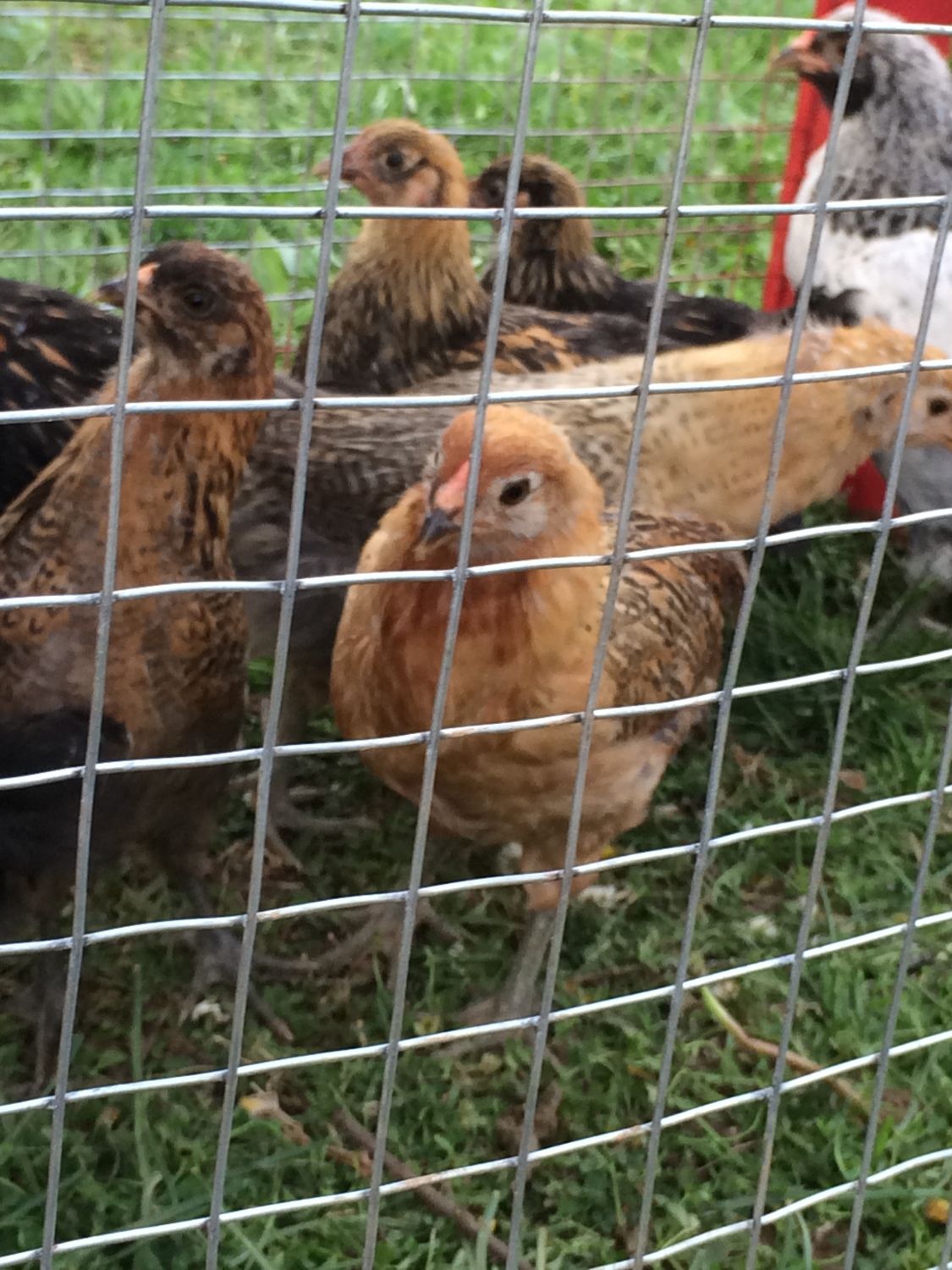 Chick 1 in in the very back by EE Roo. Chick 2 is up front and center. Chick 3 is on left (cinnamon as my son calls it)