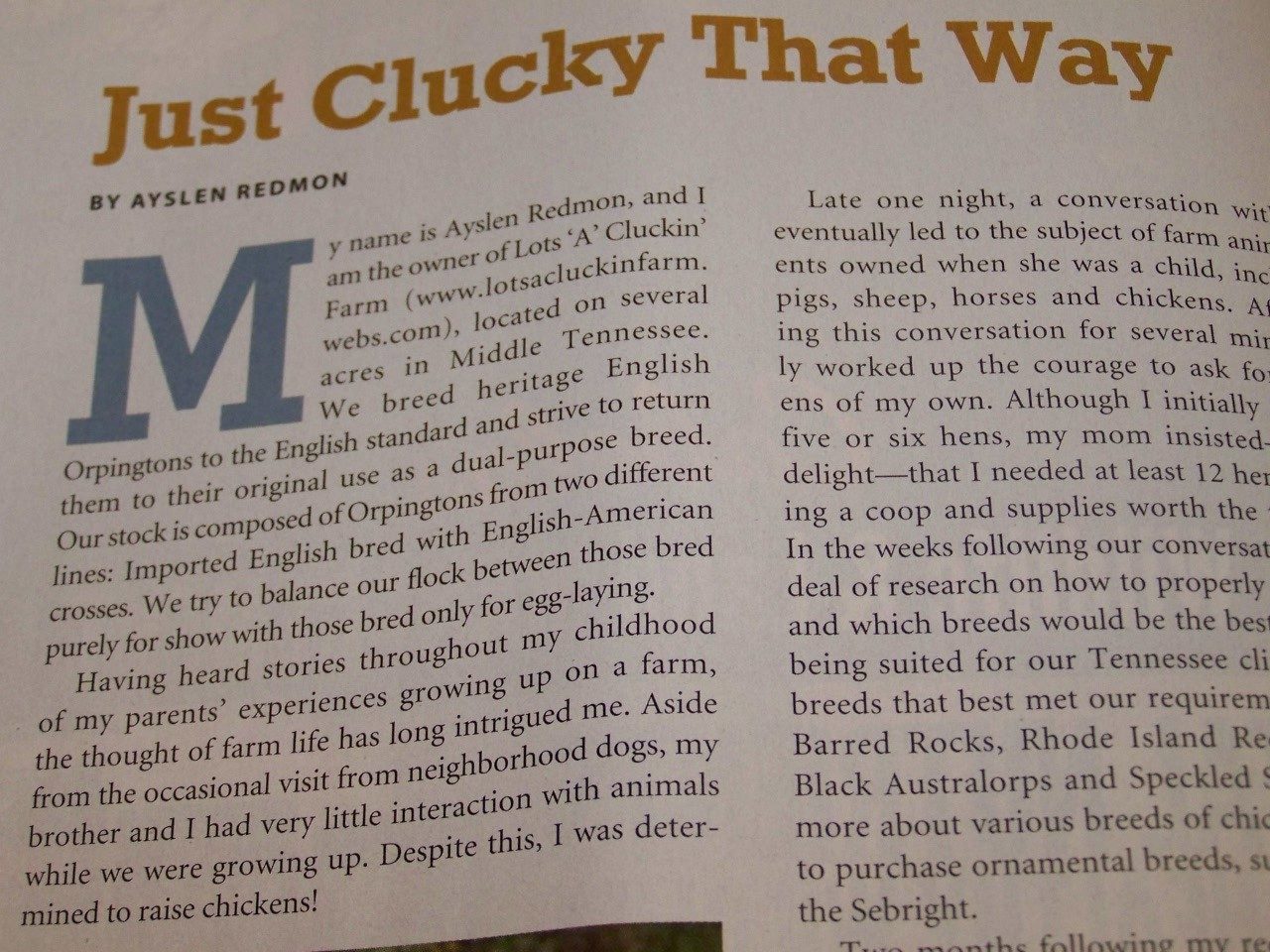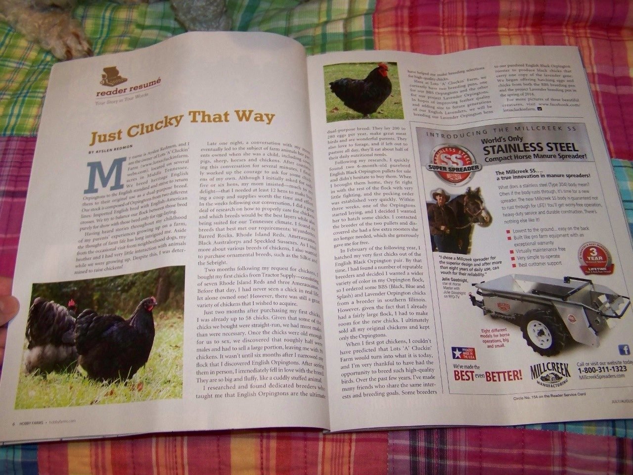 My story about how Lots 'A' Cluckin' Farm stared, was published in this months edition of Hobby Farms Magazine! July/August edition! My story is on pages 6 and 7! [COLOR=3B5998]https://www.facebook.com/LotsACluckinFarm [/COLOR]