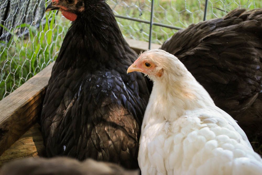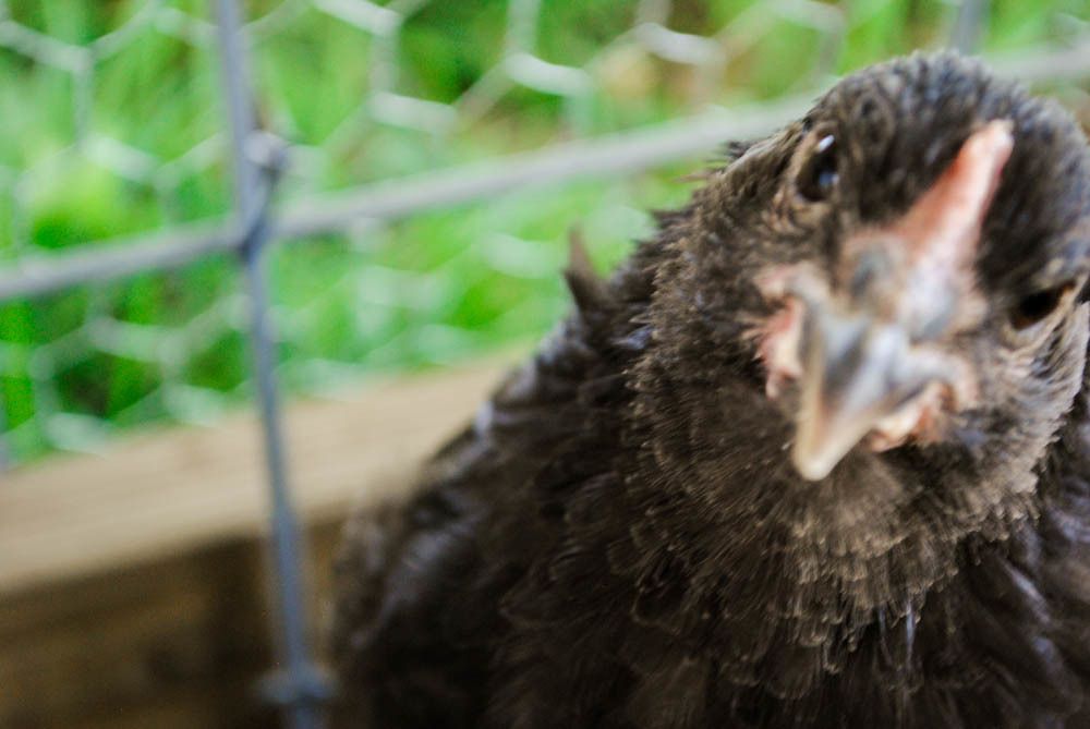 Interesting, first think I see on her is she has yellow skin on her face what color are her legs? Orps should not have yellow skin. These are my choc and there is a mauve in there too. Mine are not bantam but not huge either. I have LOADS of choc pullets that are laying listed on CL No mauves or blues sorry. I have a couple of blue split to choc cockerels I am going to use to breed for mauve when they mature. Mostly I am wanting to work with the mauves but not going to breed to get splash. Not sure what that would look like but would think the choc would still express. Your girl looks more white than splash. White is recessive or can be and if both parents have a copy they can produce a white chick..... the yellow skin makes me think you had a mixed egg in there, but that is recessive too so not sure what to tell you. Can you get some pictures of their legs? I am seeing yellow in the dark ones faces too.....