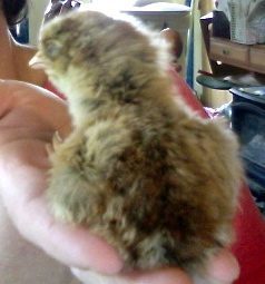 Well I got it to eat tonight. I mixed some baby food carrots with some turkey cat food and some ground Chick Starter. Peep is in with the baby quail. Peep is getting up on it's feet now and walking is improving though it still resembles a drunk staggering at times. It's breathing is more normal tonight. It can see but spends a great deal of time with it's eyes shut. I think it may be photosensitive. Hence what made me think of baby food carrots. I have successfully cut down my own sensitivity to light by eating carrots. Kind of over did it. I was in Texas at the time and I began to tan orange.