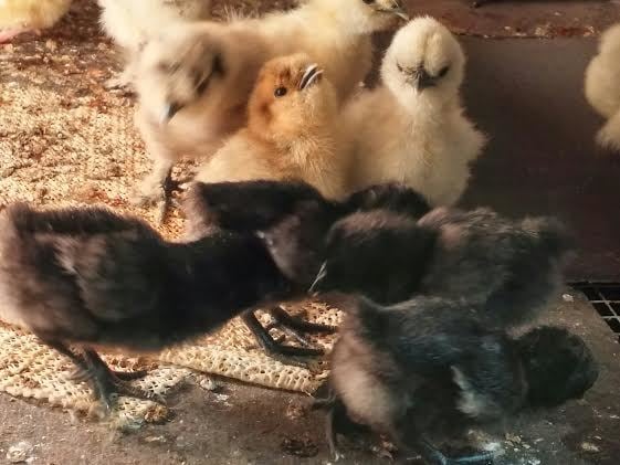 They are full of live and quite spunky. I built a new brooder to keep them save. The silkies got to go with them. They are small, smaller really than the new silkies.