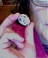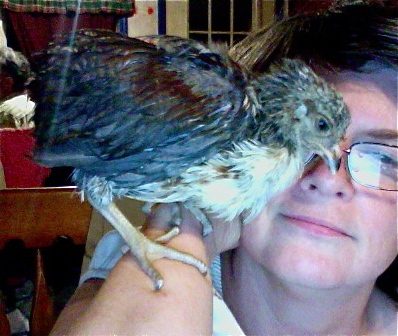 I wish the camera could catch the real color. The shiny deep blue looks much more slate blue in person and there are such subtle color patterns that don't photograph. His general color looks very much like the Tibetan quail color. Except for that white throat. Maybe a tuxedo Tibetan.