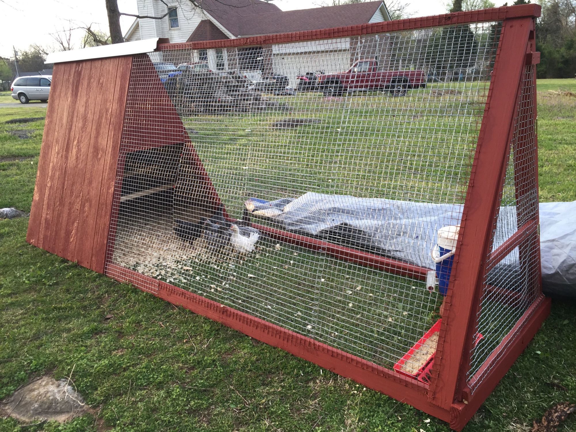 Great job! It looks professional!Spent the last three days building this grow-out coop, pretty much by myself. My husband was supposed to have the week off with me but ended up having to work. I had 9 almost 6 week old chicks in the garage that needed to get out. And some three week olds that needed to get out of the bedroom and go to the garage. My incubator chicks are one by one going under my broody.