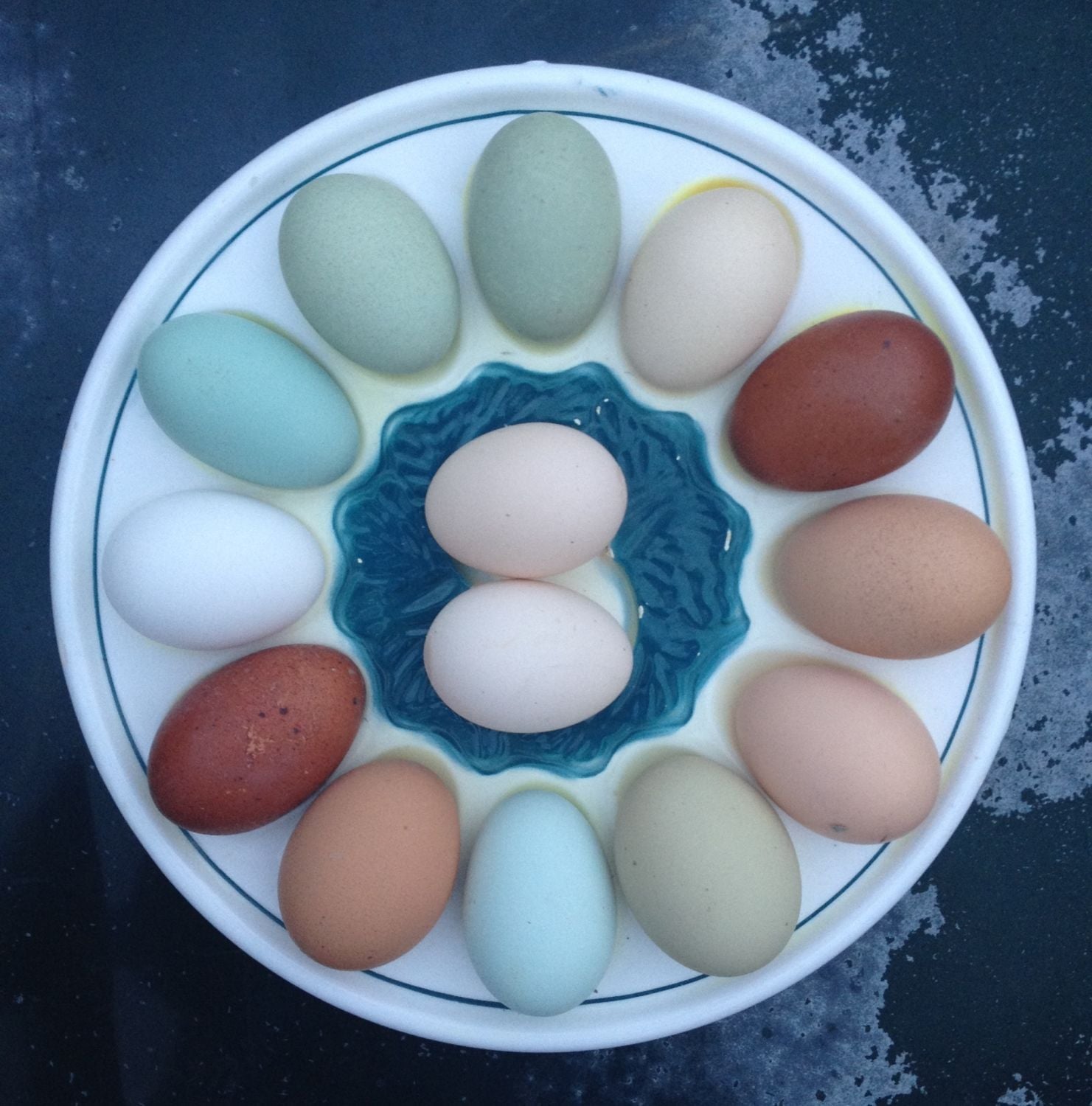 I have isabelle leghorns, brown leghorns, black copper marans that are all POL or laying. I have a herd of chicks that are getting old enough to pick out pullets. They are BYM, marans and isabelles. The roosters in the BYM are australorp, isbar (Silverudd Blue) and swedish flower hen. The hens in the BYM are marans (black and blue copper, cuckoo, birchen, white), EE, ameraucana, australorp. Very likely to have Olive eggers out of the mixed ones. I also have a small herd of silver ameraucana and Queen Silvia cockerels I am thinning out. It is pretty wild and crazy around here. Please PM me for details!