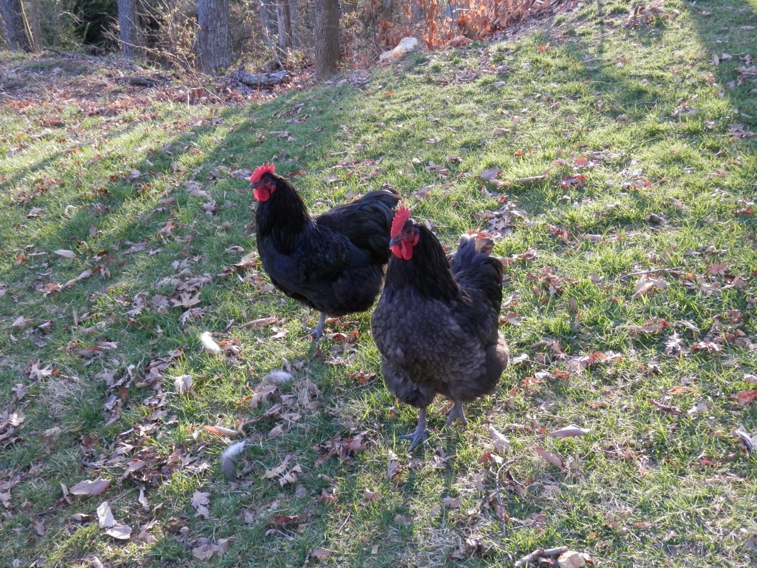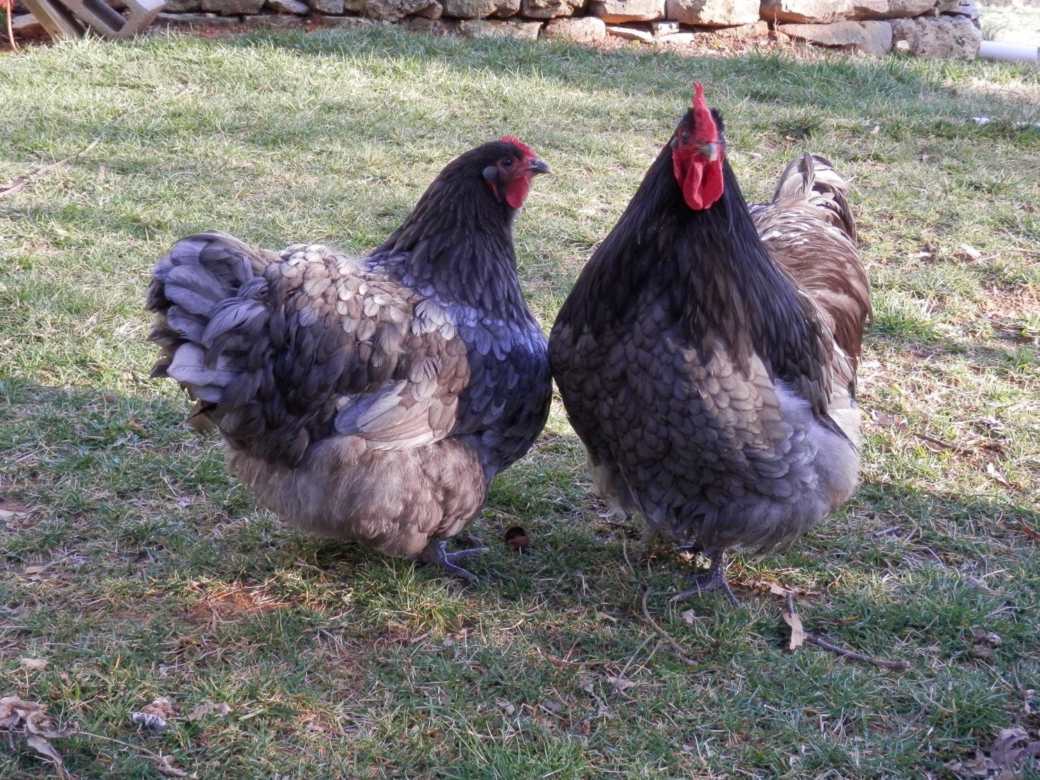 Here's a pic of a couple of the English cockerels for comparison. They are at least a month younger.