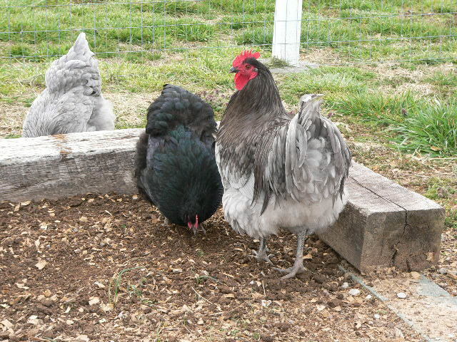 I managed to get a fairly good pic of a couple of my Orps today. This is Boris & Bebe part of a trio (sorry didn't get a pic of BB with them). Her color is not great for a blue but it may change some after her first molt and if not I still love her body type. I think they are around 7 1/2 months old (would have to check).